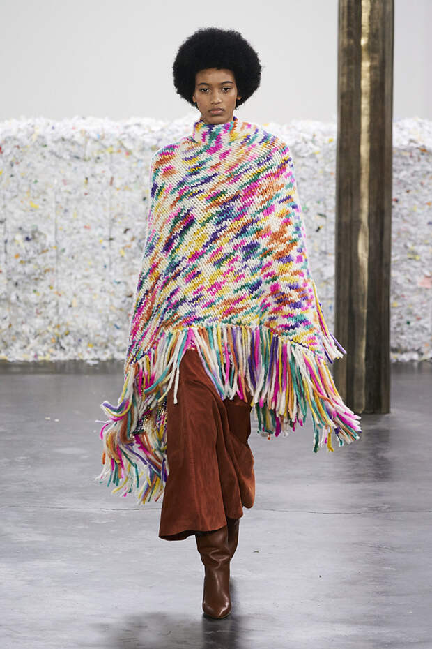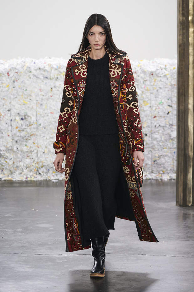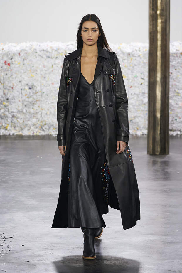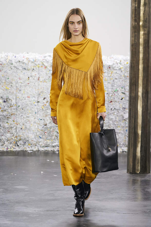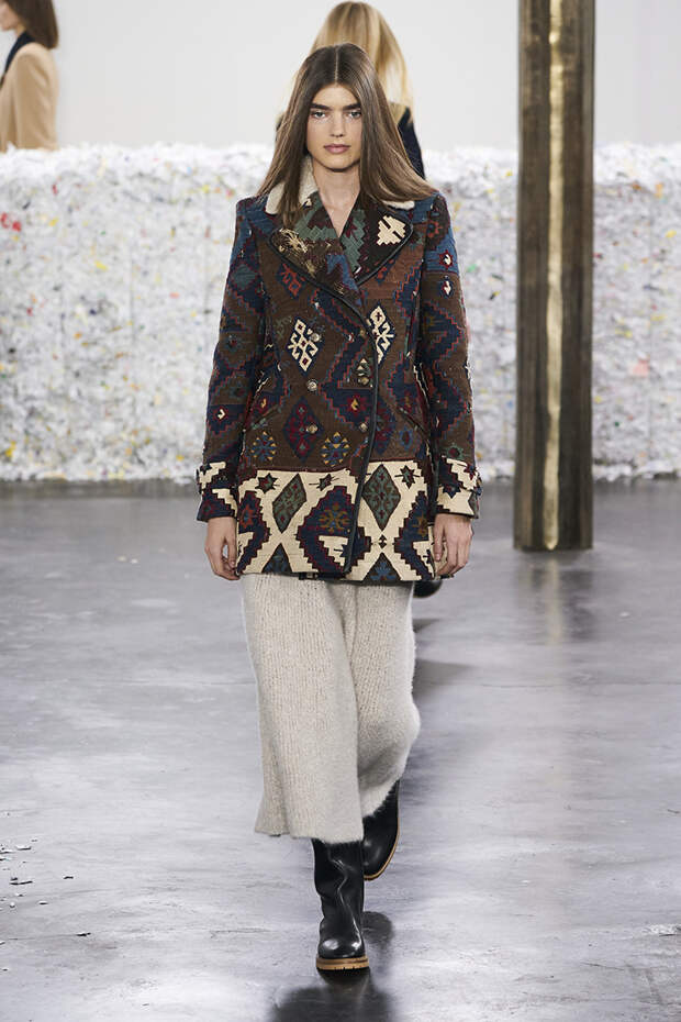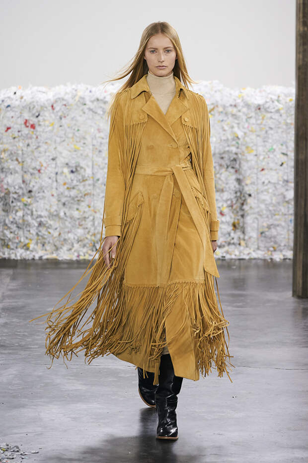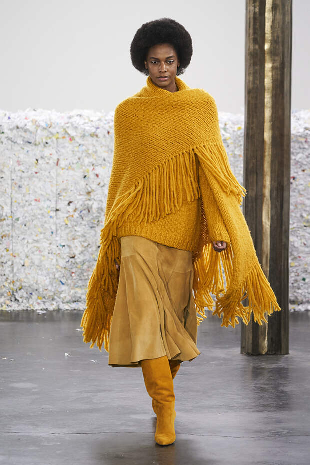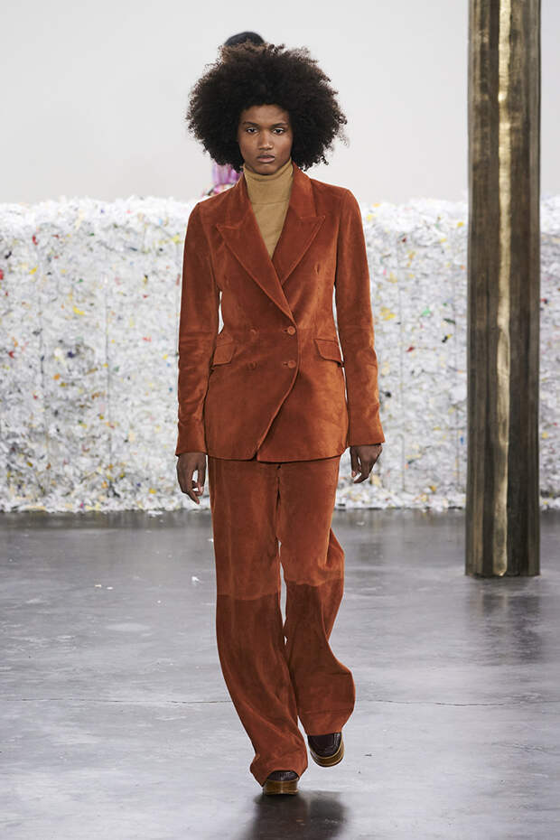 Семидесятые продолжают свое уверенное шествие по нью-йоркским подиумам — в осенней коллекции Gabriela Hearst четко считываются следы все того же десятилетия. Впрочем, для Херст все это мотивы в целом постоянные. Ее вряд ли можно представить работающей с разудалыми китчевыми 80-ми или подчеркнуто женственными 50-ми с их открыточными девушками-цветами.