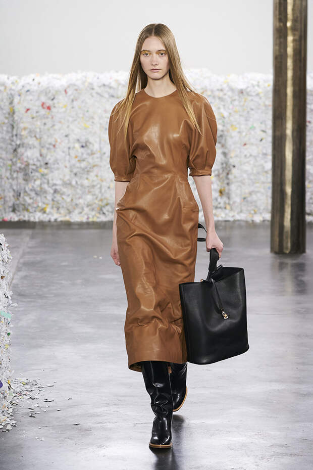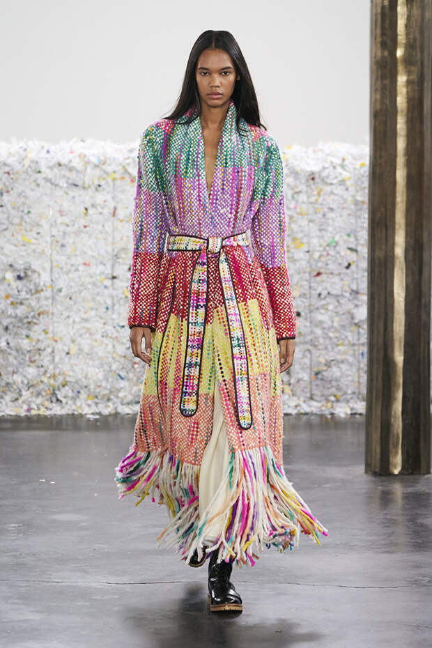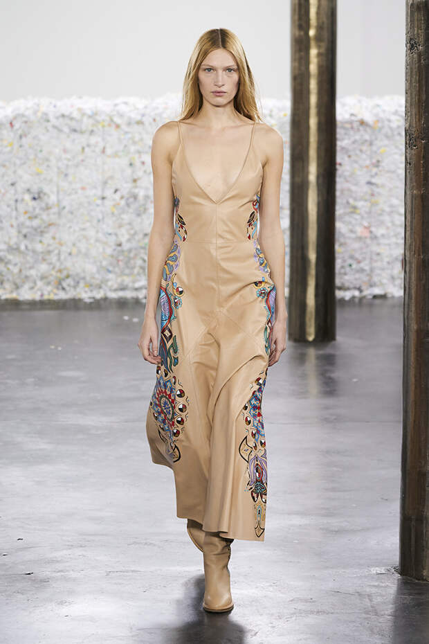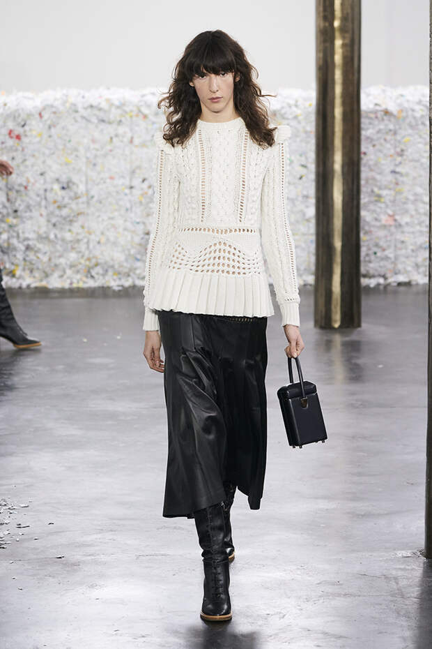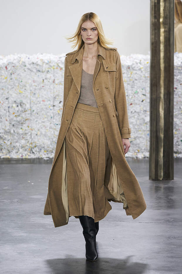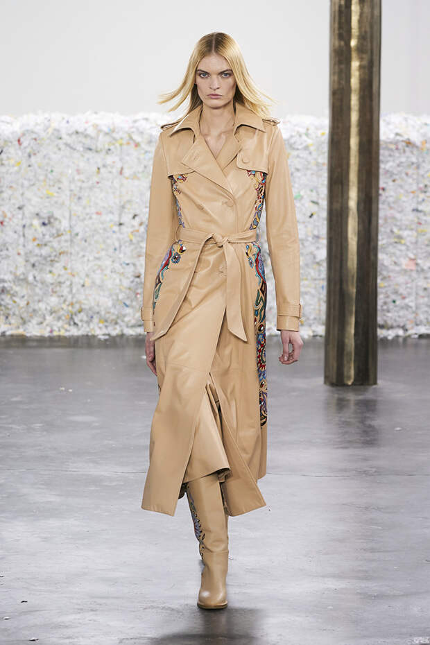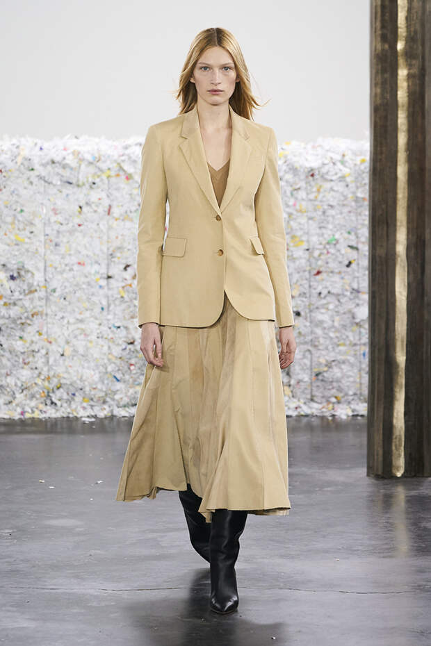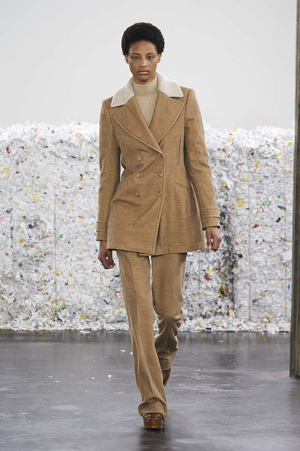 Семидесятые продолжают свое уверенное шествие по нью-йоркским подиумам — в осенней коллекции Gabriela Hearst четко считываются следы все того же десятилетия. Впрочем, для Херст все это мотивы в целом постоянные. Ее вряд ли можно представить работающей с разудалыми китчевыми 80-ми или подчеркнуто женственными 50-ми с их открыточными девушками-цветами.