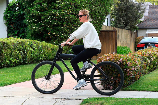 Роузи каталась на велосипеде под лучами солнца, словно в этом мире ничего не поменялось. Она выбрала кремовую толстовку, черные леггинсы и кроссовки New Balance. Волосы модель собрала в растрепанный пучок. Завершением образа Роузи стали солнцезащитные очки в черной оправе.