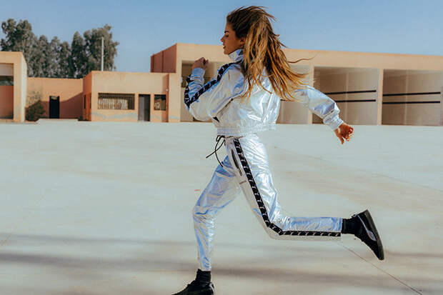 Встречайте униформу для летних фестивалей и вечеринок: худи, толстовка, штаны и бомбер в черно-красной гамме — все в совместной коллекции Puma и The Kooples. Но звезда коллекции, конечно же, — серебристый костюм с укороченным анораком и брендированными лампасами. Можно носить с босоножками в лучших традициях спортшика или с кроссовками, например Puma Thunder.