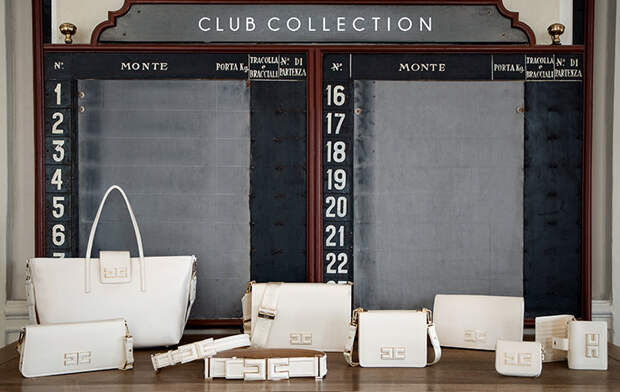 Коллекция The Club — дань неизменным составляющим ДНК Elisabetta Franchi, женственности и аристократизму. Белые аксессуары вдохновлены характерным стилем закрытых конных клубов. Всего получилось 9 предметов из экокожи: сумка мини и макси, модель через плечо, классическая повседневная сумка, органайзер и оригинальный кошелек, доступный в версии с ремешком, и два ремня, украшенные логотипом Elisabetta Franchi.