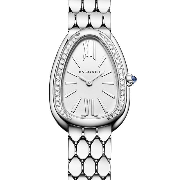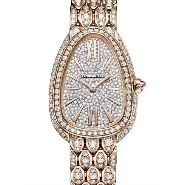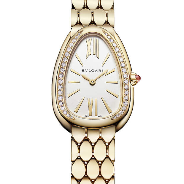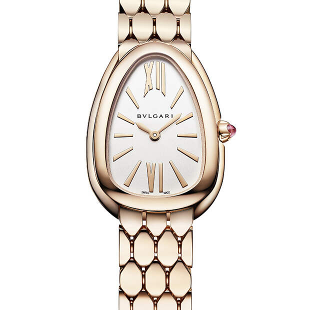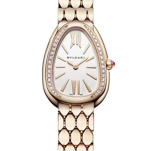 Итальянский Дом представил на выставке Baselworld женские часы Serpenti Seduttori, пополнившие коллекцию знаменитых «змеек». В новую серию вошли 6 моделей из розового, желтого и белого золота с украшенным бриллиантами циферблатом, браслетом, напоминающим рисунок чешуи и корпусом фирменной каплевидной формы — этот мотив навеян другой моделью, Serpenti Tubogas.