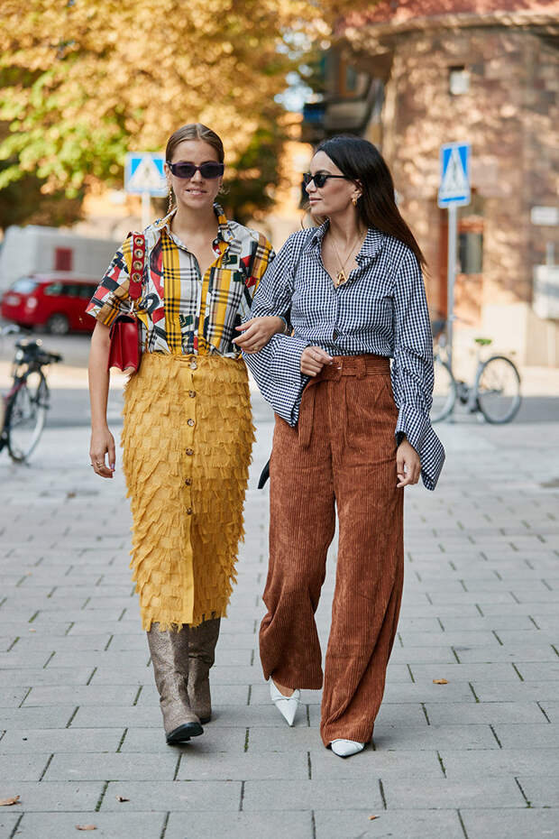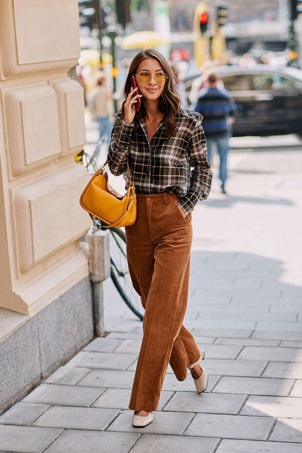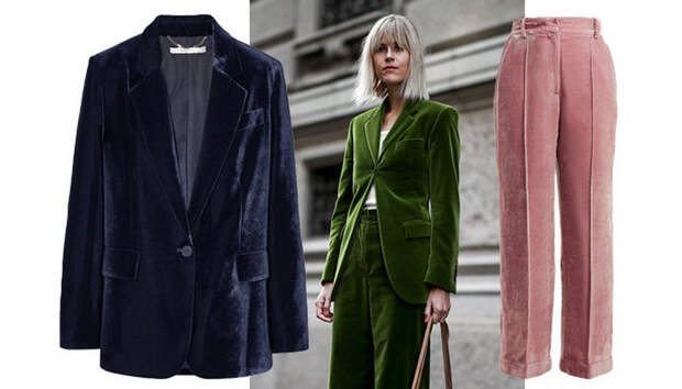 Классика сочетаний — костюмы из вельвета, водолазки или футболки. Но можно носить такие вещи и отдельно. Например, брюки сочетать с флисовыми оверсайз-рубашками, яркими свитерами и романтичными блузками, а жакеты — с простыми голубыми джинсами и юбками миди.