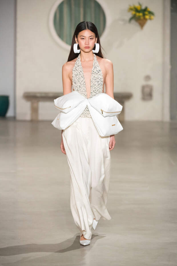 А он для своего показа превратил пространство в площадь южного французского городка — и за размах уже получил от журналистов звание "нового Карла Лагерфельда".В новом сезоне французский дизайнер действительно решил доказать всем, что он больше чем Симон Порт Жакмюс, которого они знали, но не посягая на лавры покойного кайзера Карла, а прыгнув выше собственной головы. Цель была — показать, что ему есть что предложить миру и кроме привычной жизнерадостной и легковесной чувственности, которую все, впрочем, очень любили. Так что в осенней коллекции фокус резко сместился с тела на собственно одежду.