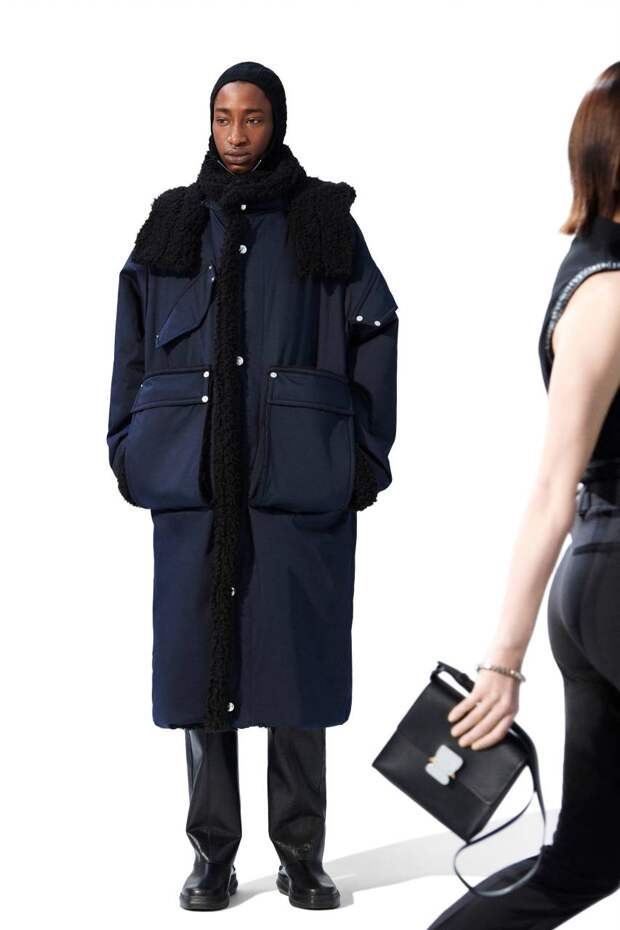 Мэтью Уильямс всегда был сосредоточен скорее на технической стороне моды, чем на идейной. Поиски первоисточников занимают его куда меньше, чем вопросы качества ткани, свойств фурнитуры и особенностей кроя. В этом смысле его приход в Givenchy оказался для него очень логичен — но и не менее полезен. Мастера старого Дома могут поделиться с ним своей экспертизой в части того, как довести крой и обработку всех деталей до полного совершенства. И Уильямс, судя по всему, очень благодарный ученик. Глядя на новую коллекцию его собственного бренда Alyx, становится понятно, что менее чем за 2 сезона работы в Givenchy он уже успел очень многое оттуда вынести. Его крой стал еще более четким и филигранным, а внимание к деталям, кажется, только более усилилось. Это отражено даже в его собственном описании коллекции — оно совершенно игнорирует привычные моменты, связанные с описанием источников вдохновения. Зато самым подробным образом рассказывает о всех использованных тканях и технических приемах. На выходе мы имеем технически безупречную одежду, которая "цементирует" статус Уильямса как мастера готовых решений — в равной степени практичных и эффектных. Добротные брючные костюмы и жакеты, оверсайз-парки, удобная обувь на манер домашних тапочек, в которую можно просто влезть без лишних усилий и застежек — это идеальный гардероб для людей пост-пандемийной эпохи, привыкших ничего не усложнять.
