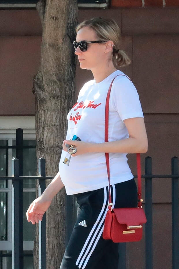 42-летняя Диана Крюгер вот-вот впервые станет мамой. Судя по размерам ее живота, долгожданный день икс совсем скоро. А пока она готовится к появлению малыша в Нью-Йорке. Фотографы застали актрису возле ее дома в простом повседневном образе: спортивные штаны adidas, шлепанцы и футболка. Но красная сумочка на длинном ремешке сразу же придала ее костюму капельку элегантности.