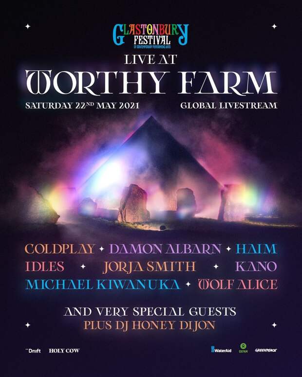 Все они выступят в фирменных декорациях Glastonbury, но без зрителей — эпидемиологическая обстановка в Великобритании пока не позволяет проводить такие крупные мероприятия.