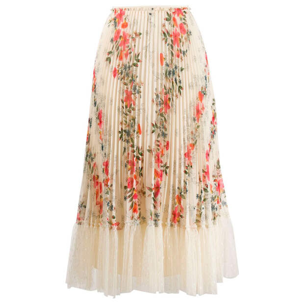 Обратите внимание на варианты с плиссе, как у Red Valentino - в этом сезоне актуален такой фасон. С крупным принтом, как у Dolce&Gabbana и La Doublej, стоит быть осторожнее - они могут визуально придать объем. Миксуйте "цветочные" юбки с базовыми вещами и минималистичными украшениями, чтобы не перегрузить образ.