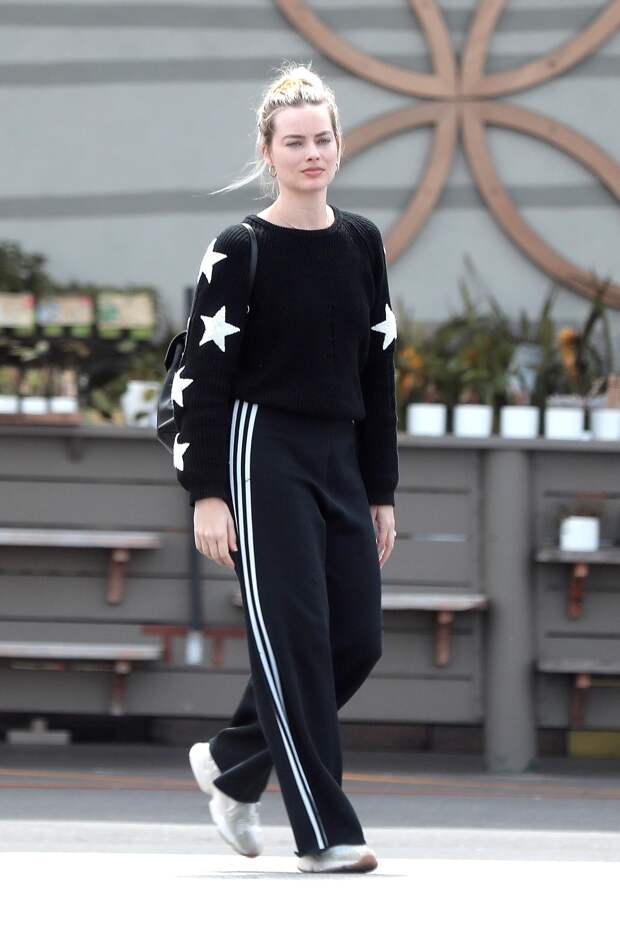 Марго ответственно подошла к выбору аксессуаров: она разбавила свой расслабленный наряд черным рюкзаком Chanel, золотыми серьгами-хулахупами и цепочкой. Супруги посетили несколько магазинов, прежде чем все-таки купить продукты в одном из них: они выбрали тот, где внутри было меньше всего народу, чтобы не стоять долго в очереди.