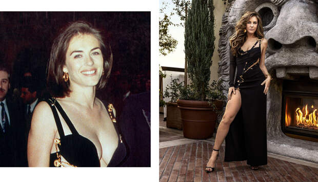 А уже на следующий день Элизабет проснулась знаменитой: вот уже 25 лет ее образ включают в рейтинги самых эффектных и сексуальных вечерних выходов. И вот теперь, спустя четверть века, актриса повторила свой культовый образ и примерила платье с булавками для апрельского Harper’s Bazaar (и нам это страшно приятно!) в объективе фотографа Дэймона Бэйкера. За это время Херли почти не изменилась, а ее точеная фигура по-прежнему идеально сочетается с золотом и черным бархатом Versace. Красавица!
