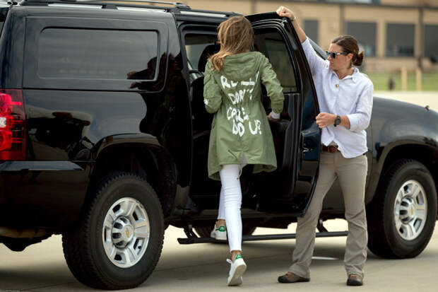 Пожалуй, самый скандальный лук Мелании за все последние 4 года. Для визита в центр, в котором содержатся дети нелегальных мигрантов на границе с Мексикой, она надела парку Zara стоимостью всего 40 долларов. Вероятно, это была ее попытка выглядеть более демократично, ведь ее не раз критиковали за шопоголизм и необоснованно дорогие образы. Правда, и здесь она просчиталась: на куртке во всю спину красовалась надпись "Мне правда все равно, а вам?". Многие пользователи соцсетей тогда посчитали, что таким образом она высказалась о проблеме миграционной политики США. Мол, мне все равно, что детей мигрантов разлучают с родителями, а вам? Официальные представители президентской четы такое досадное faux pas объяснили тем, что Мелания просто не подумала о значении этой надписи. Правда, спустя какое-то время они же утверждали, что это было ответом на критику со стороны прессы. Как бы там ни было, этот выход точно запомнится всем надолго.