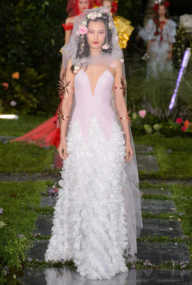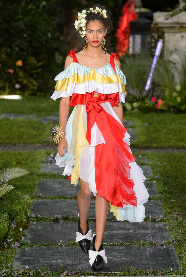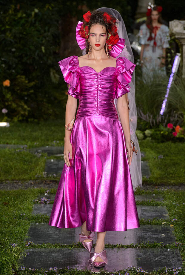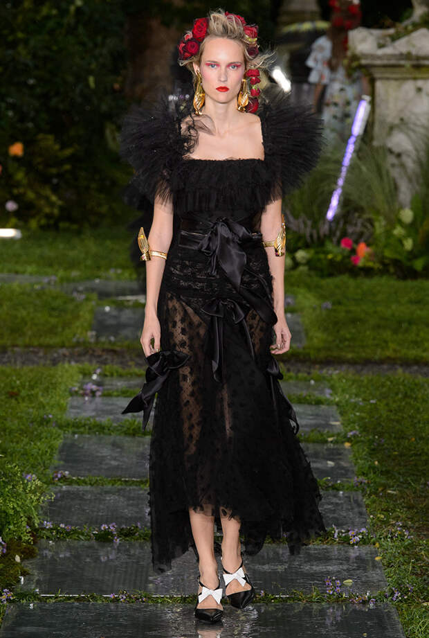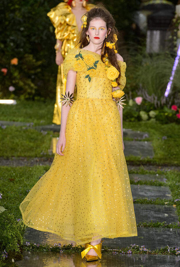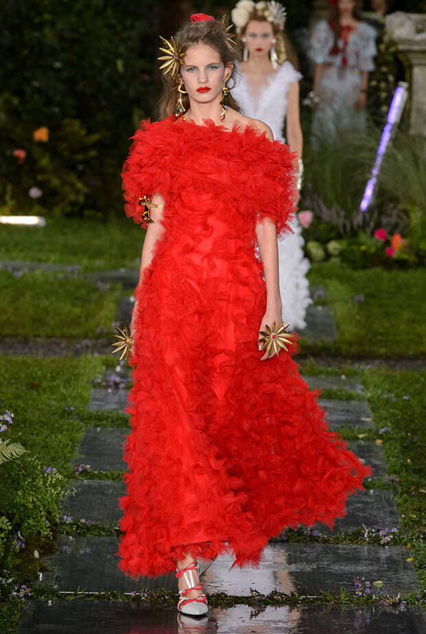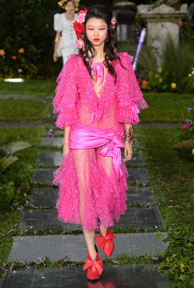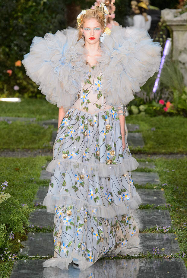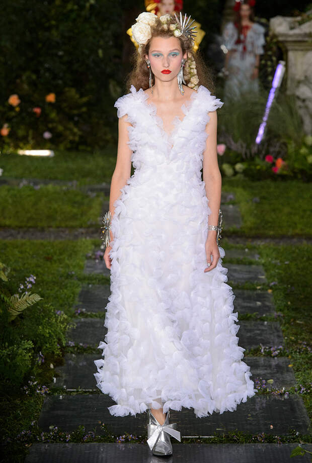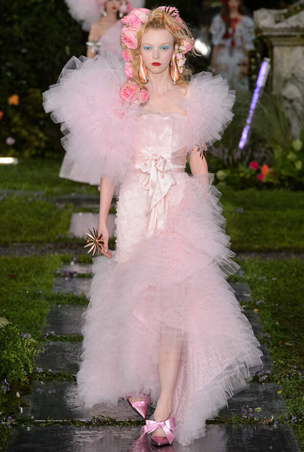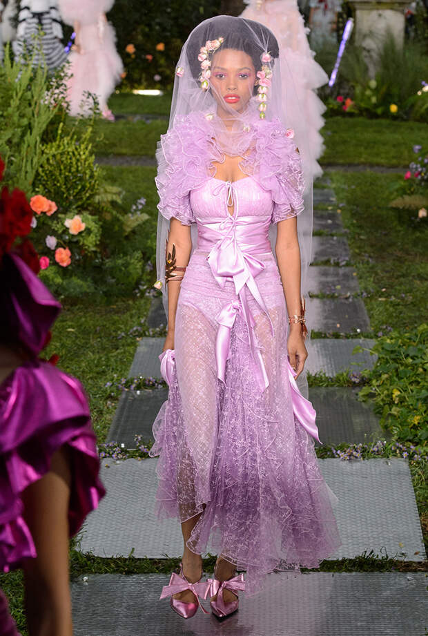 На подиуме разворачивалось поистине сказочное действо: модели, облаченные в королевские одеяния будто из прошлой эпохи, медленно шествовали мимо гостей.Бесконечные оборки, шелковые ленты, цветочные рисунки и нашивки, кружево, фатин, пышные юбки и обилие бантов – от таких платьев наверняка не отказались бы королевы и императрицы средневековья. Но и современные девушки, без сомнений, равнодушными при виде этой коллекции не останутся. В частности, предложенные Кейт и Лаурой вещи идеально подойдут для бракосочетания. Ведь если у большинства модельеров выход невесты обычно приберегается для финала показа, то здесь таких образов было большинство.