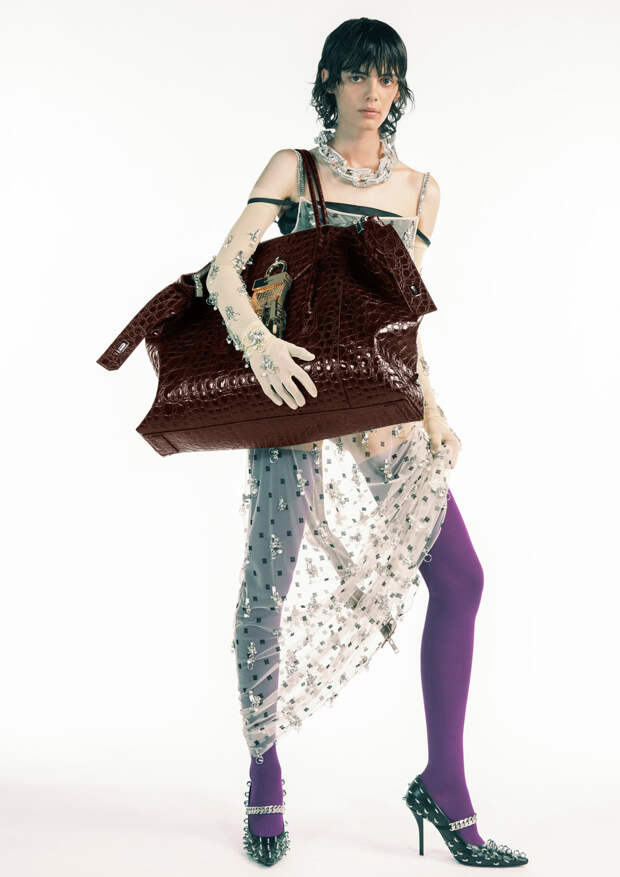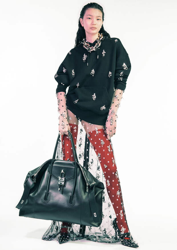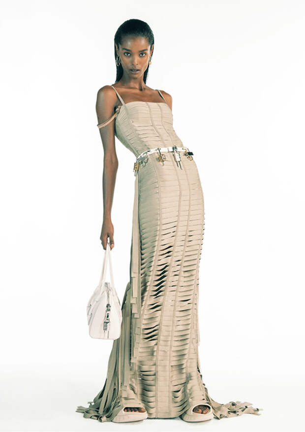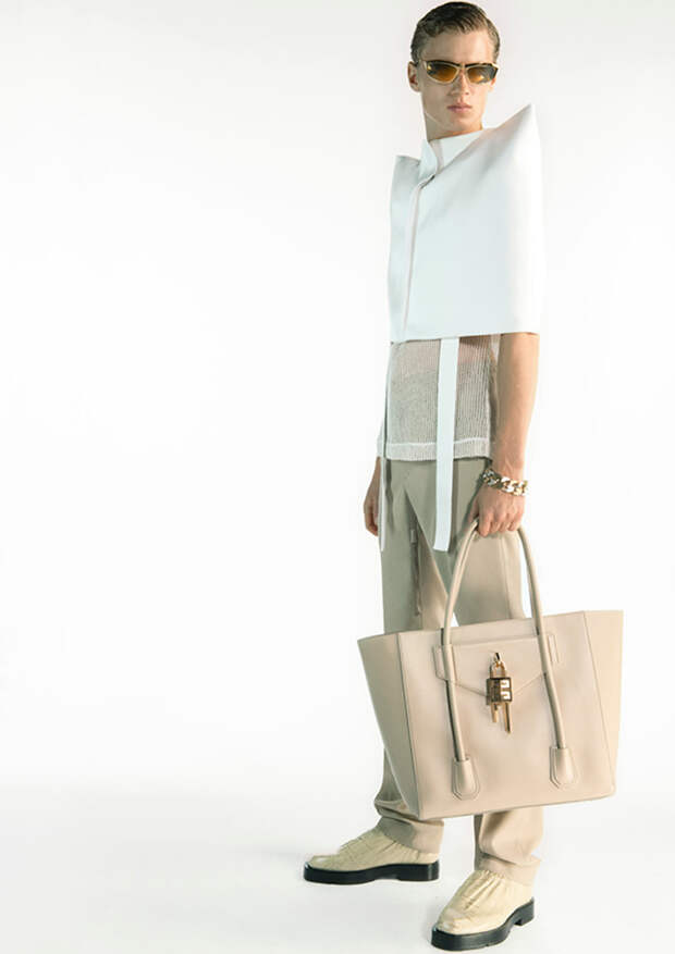 Новое назначение, казалось бы, лишь еще один ход в этой партии, который легко было просчитать заранее. Первые тизеры будущей коллекции с фото крупных металлических замков только больше наталкивали на те же мысли — Мэтью Уильямс давно известен своей страстью к фурнитуре и даже разрабатывал пряжки на ремнях и сумках для первой коллекции Кима Джонса в Dior Men. Но его дебют в Givenchy в конечном итоге показал новые грани создателя Alyx.