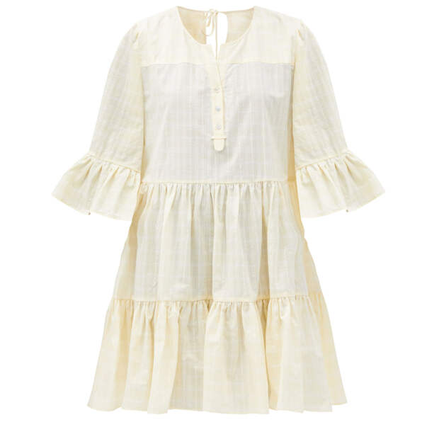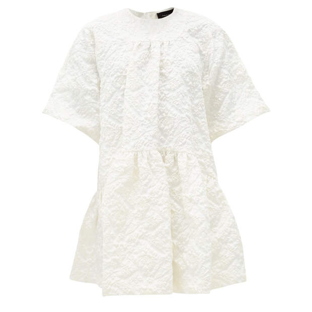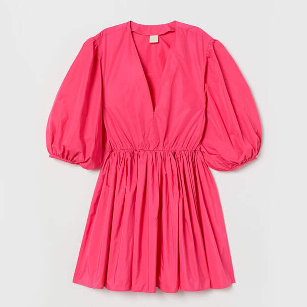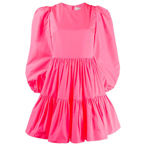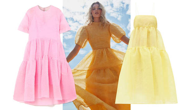 Один из самых актуальных фасонов этого лета - объемное платье, которое за счет свободного кроя прозвали платьем-парашютом, или платьем-пирожным. Второе название объясняется скорее наличием множественных милых деталей у подобных моделей: рюшей, оборок, многоуровневого дизайна, - и легкого летящего материала.