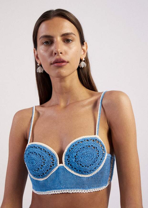 С чем носить такую вещь? Этим летом — практически с чем угодно. От трендовых широких джинсов — до «мужских» брючных костюмов (в таком комбо бра в технике кроше легко добавит иронии). В жару — с короткими шортами с высокой посадкой. Или, скажем, поверх футболки — в прохладную погоду. А мы уже собрали для вас 8 лучших вариантов топо-бра в технике кроше — чтобы вам было, из чего выбрать.