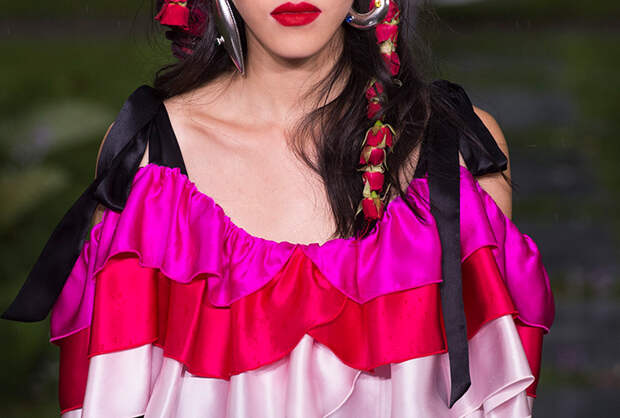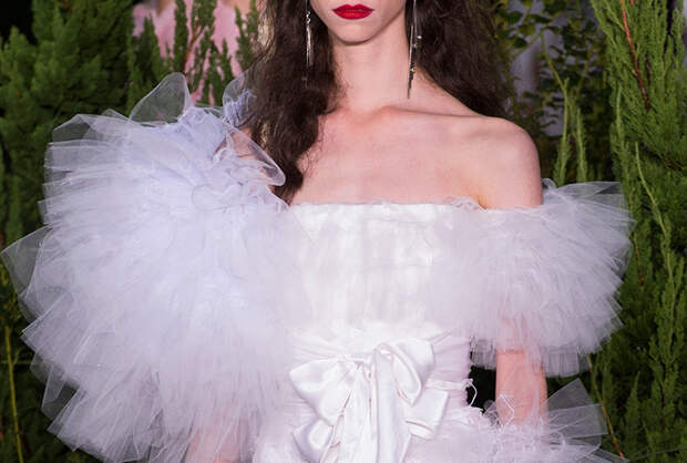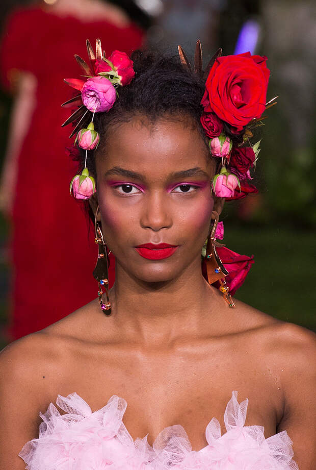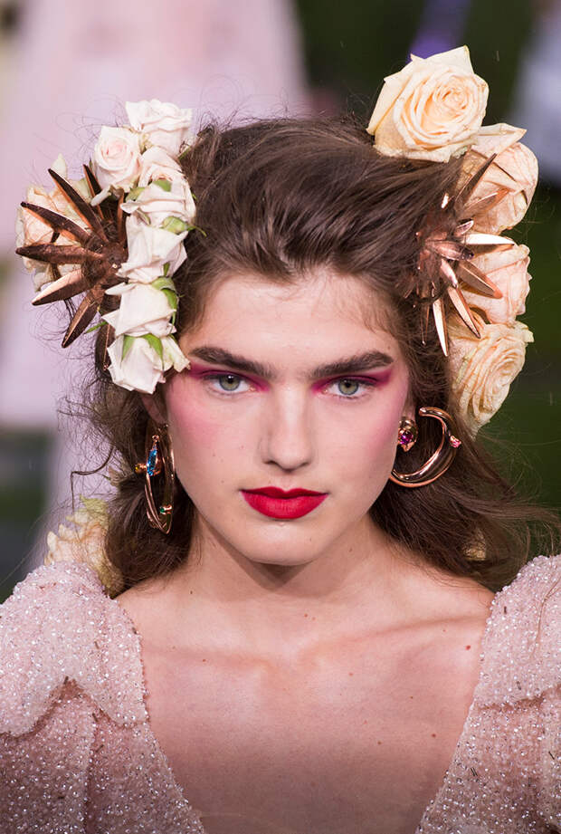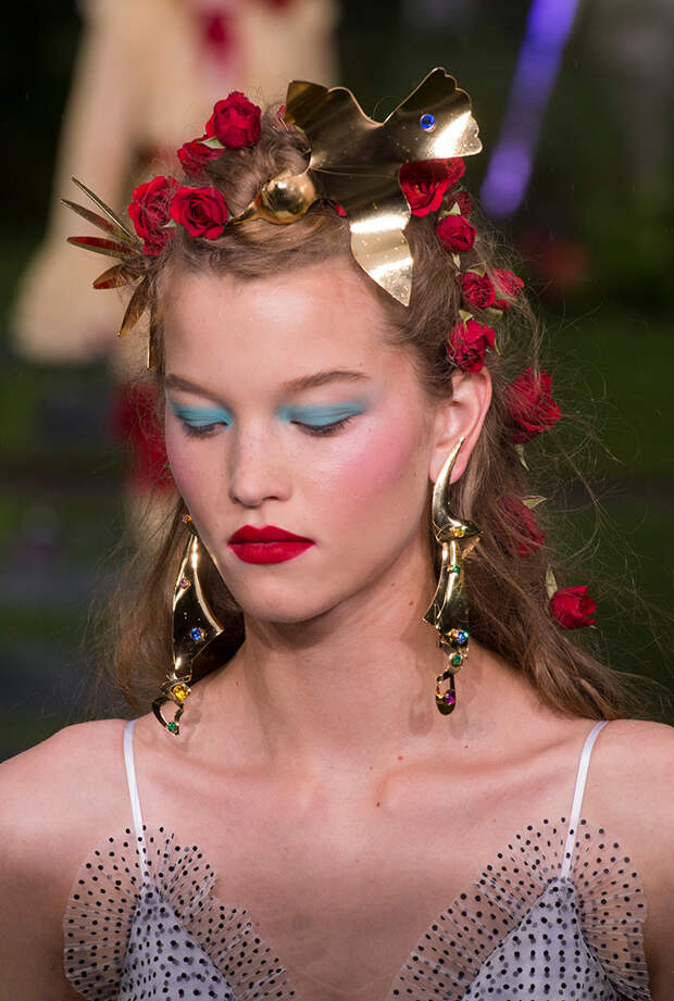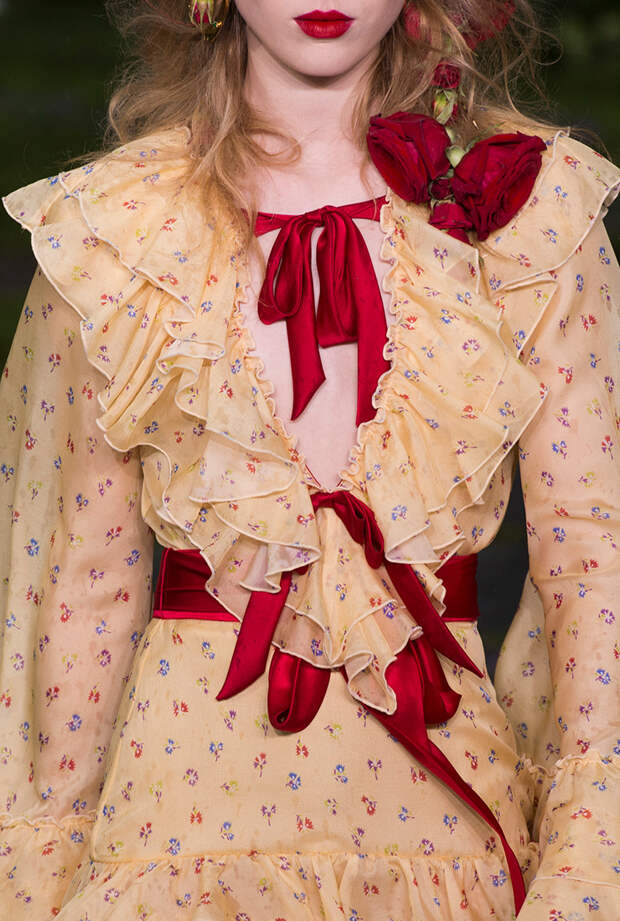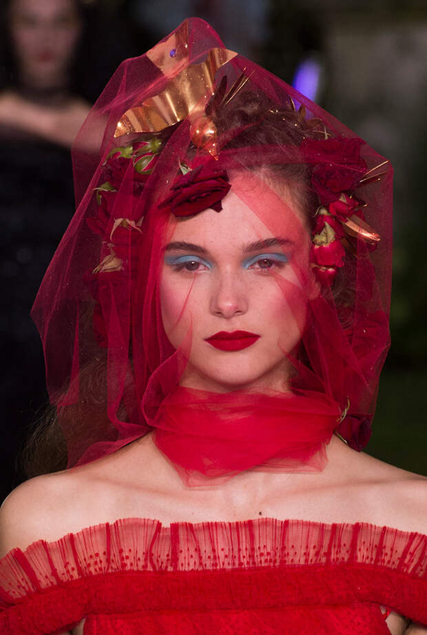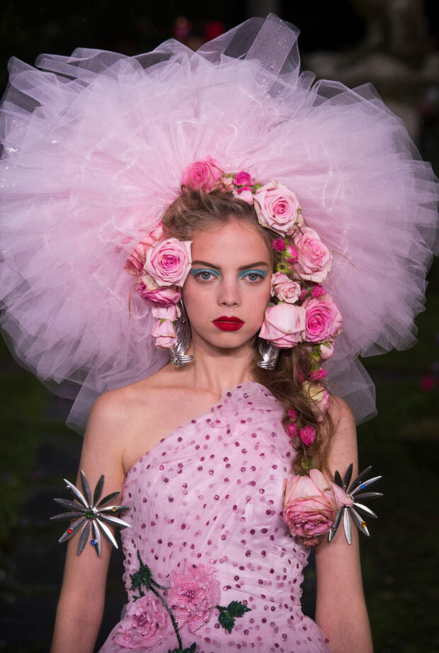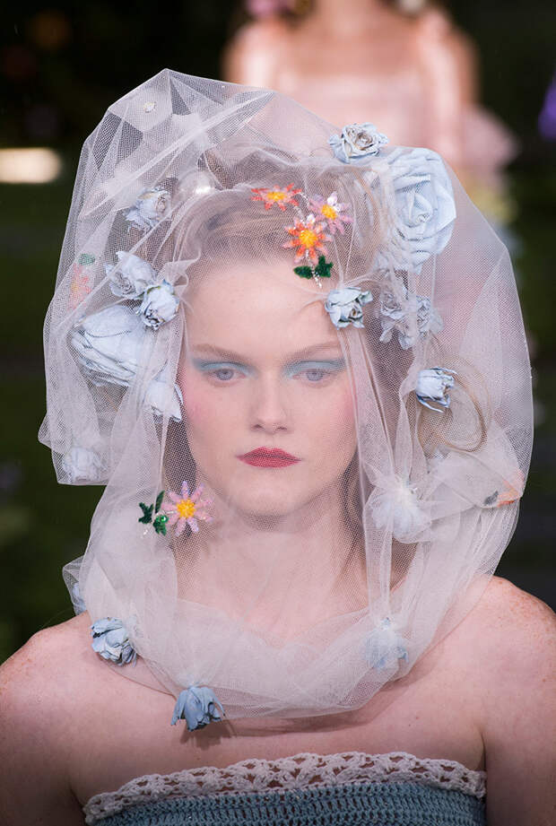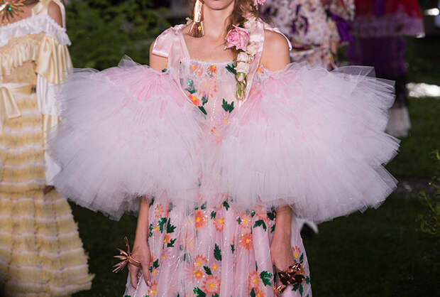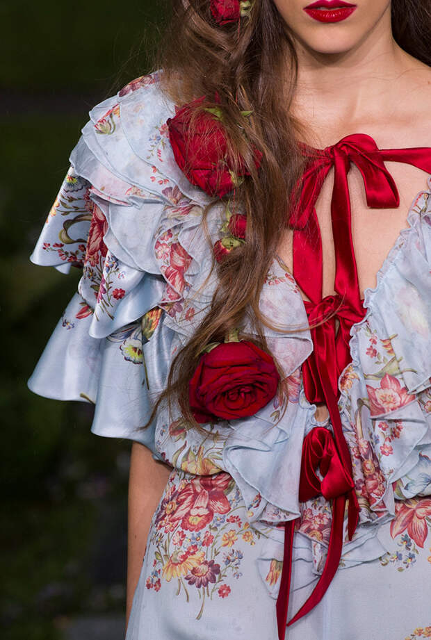 Также для всех моделей Кейт и Лаура заготовили живые цветы: их стилисты вправляли девушкам в прически и закрепляли на фатине, покрывавшем головы многих из них. Живые розы красиво сочетались с теми, что были вышиты на вещах. Словом, королевский шик прослеживался даже в мелочах.
