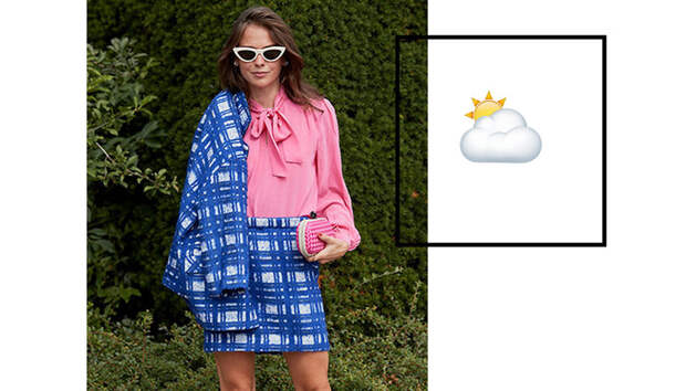 Блейзер BALENCIAGA, 135 884 руб.; юбка BALENCIAGA, 50 294 руб.; блузка GUCCI, 66 105 руб.; очки SAINT LAURENT EYEWEAR, 16 283 руб.; сумка TYLER ELLIS, 156 342 руб.; босоножки SOPHIA WEBSTER, 31 076 руб.