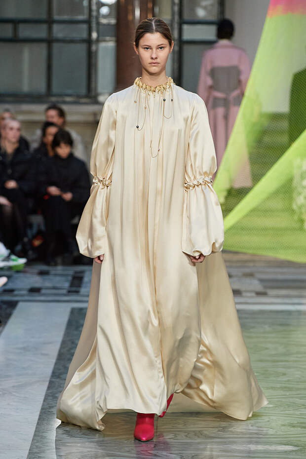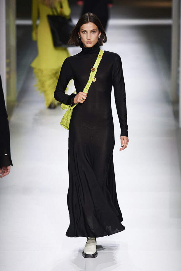 Вариаций модных макси-платьев множество: это и романтичные струящиеся фасоны, как у Roksanda, и консервативные прямые кафтаны, как у Jil Sander и La Collection. При желании можно выделить тонкую талию, которую скроет такой летящий балахон, ремнем. Чтобы лук не получился чересчур консервативным, выбирайте платье с V-образным вырезом и дополните его минималистичным колье или подвеской. За счет своей сдержанности такие модели будут отличным базовым элементом в осеннем гардеробе - останется только менять аксессуары и обувь по настроению. Платья в пол на тонких бретелях, как у Bernadette, станут хитом следующего лета, поэтому их можно начать носить уже сейчас, предвосхищая тренды. Облегающие модели макси не уступают по сексуальности дерзкому откровенному мини - они идеально подчеркивают все формы и линии фигуры, особенно в движении. Такие скромные, на первый взгляд, платья можно найти у Bottega Veneta и Albus Lumen, а вариант с неожиданной деталью и отголоском летнего тренда - открытой спиной - у Norma Kamali. Длину макси лучше носить в паре с обувью на каблуке или толстой подошве: это могут быть мюли или объемные кроссовки для ранней осени, или же казаки и сапоги на устойчивом каблуке.