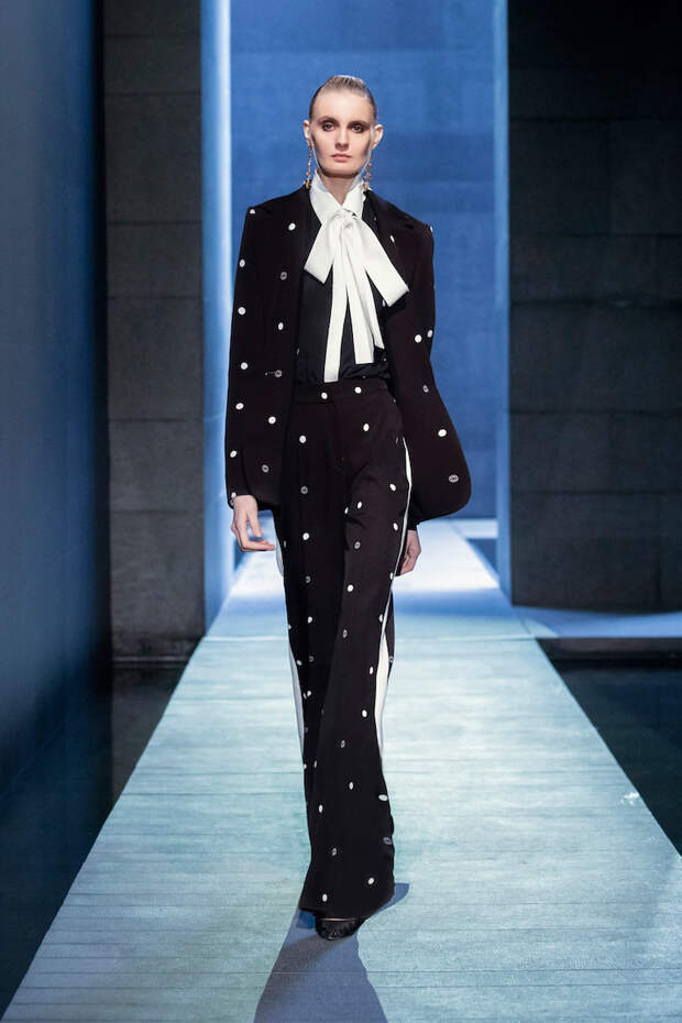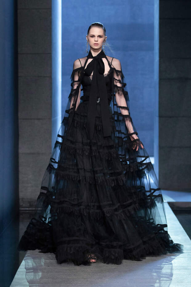 Его новая коллекция сделана по тому же самому принципу. Царственные вечерние платья, роскошные вышивки кристаллами, перья, мягкий бархат, тонкое кружево: каждая вещь — само изящество. Как будто наряды для сказочных принцесс. Для усиления эффекта все образы выполнены в тотальном монохроме — такое цветовое единство только подчеркивает элегантность силуэтов и безупречность исполнения. Ничего ультрамодного, трендового и сиюминутного — только вечная классика и бескомпромиссная женственность. Те самые вечные ценности, к которым так приятно обратиться в наши непростые и нестабильные времена.