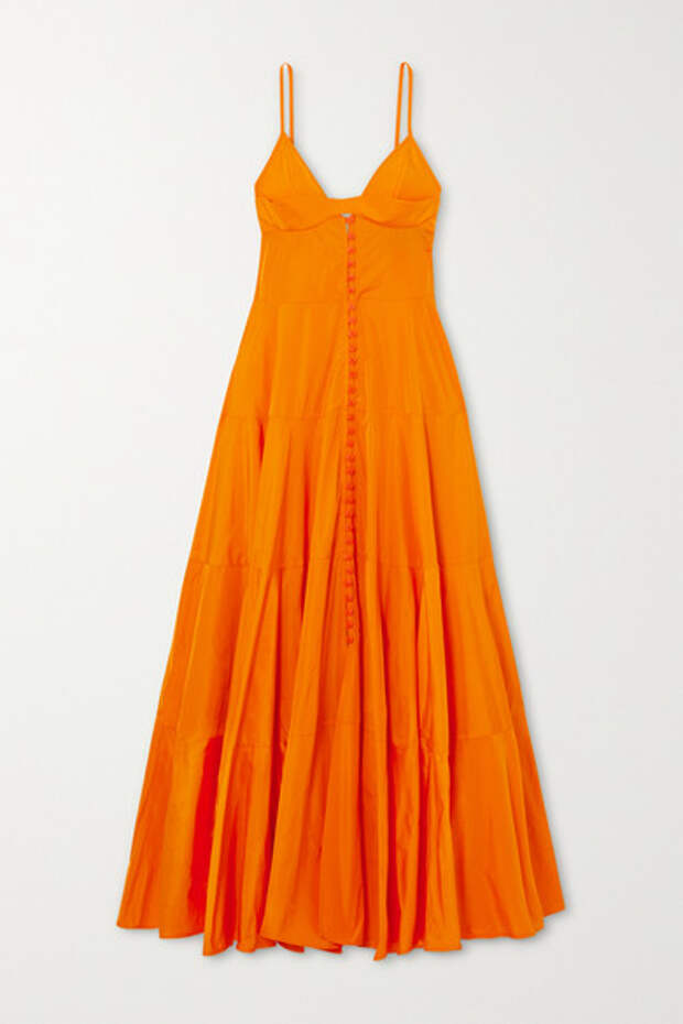 Мы уже писали, что оранжевый цвет — абсолютный фаворит дизайнеров, даже столь непохожих между собой, как Prada и Jacquemus. Насыщенный апельсиновый оттенок будет востребован как в верхней одежде (присмотритесь к жакетам и плащам), так и в легких летних платьях и сарафанах. Он будет хорошо работает как в качестве небольшого акцента, так и в total look.