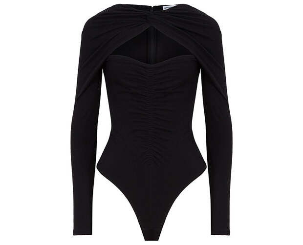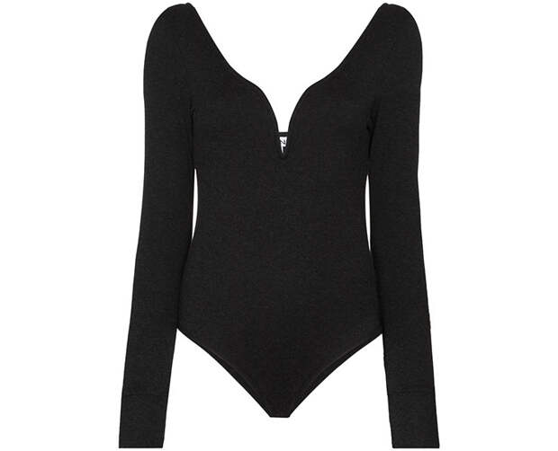 Носить боди можно по-разному. В большей степени все зависит от того, какой модели вы отдадите предпочтение. Монотонные шерстяные или кашемировые боди (к примеру, от Gabriela Hearst или Wolford) можно смело использовать как базу для теплых зимних образов. Сочетайте их с широкими джинсами, двубортным блейзером и ботильонами на устойчивом каблуке. Приправляем образ стеганым пуховиком и ярким шарфом – вуаля, стильный и уютный лук готов. Однако списывать боди с модных счетов тоже не стоит. Чтобы в этом убедиться, достаточно взглянуть на модели с фигурными вырезами от Ganni и Alexander Wang. При умелой стилизации они точно могут стать звездами любого образа. Носите такие боди с брюками-бананами с высокой посадкой (для максимальной женственности образа) или с кожаной юбкой – дополнить аутфит помогут массивные серьги на пару с ультрамодным браслетом-каффом.