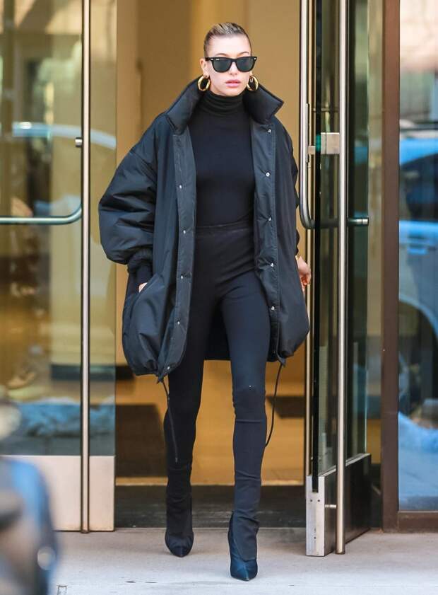 Раняя весна не позволяет нам в полной мере перестроиться на теплую погоду и избавиться от объемной верхней одежды. К тому же, оверсайз по-прежнему на пике моды, и всегда есть риск выглядеть массивнее, чем мы есть на самом деле. Но Хейли Болдуин придумала, как уравновесить объемный верх. Молель отправилась на прогулку по Нью-Йорку в черной воздушной куртке Balenciaga с пышным рукавами.
