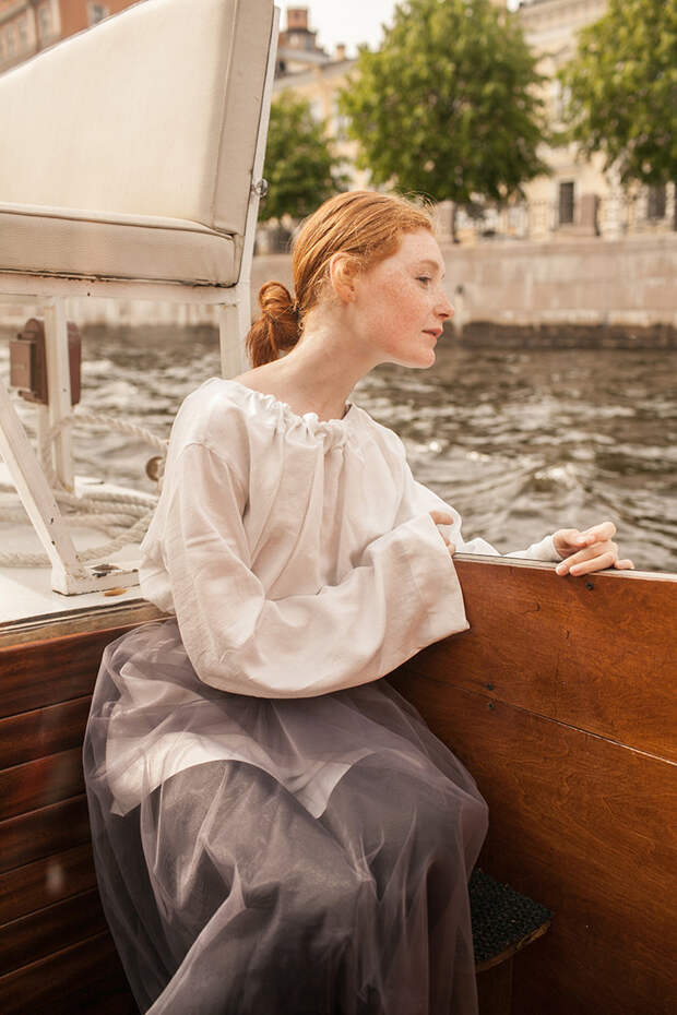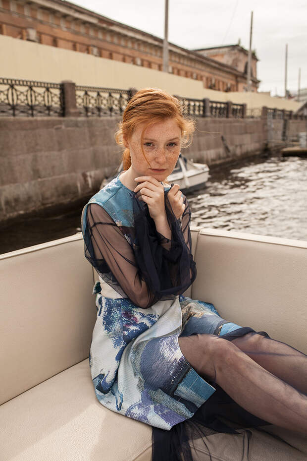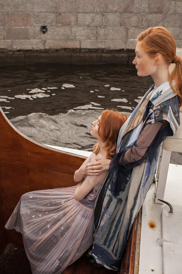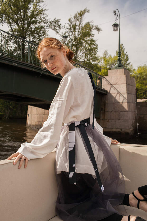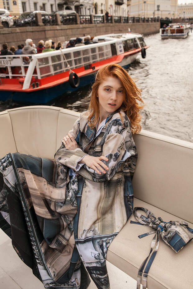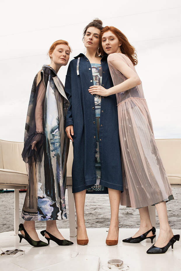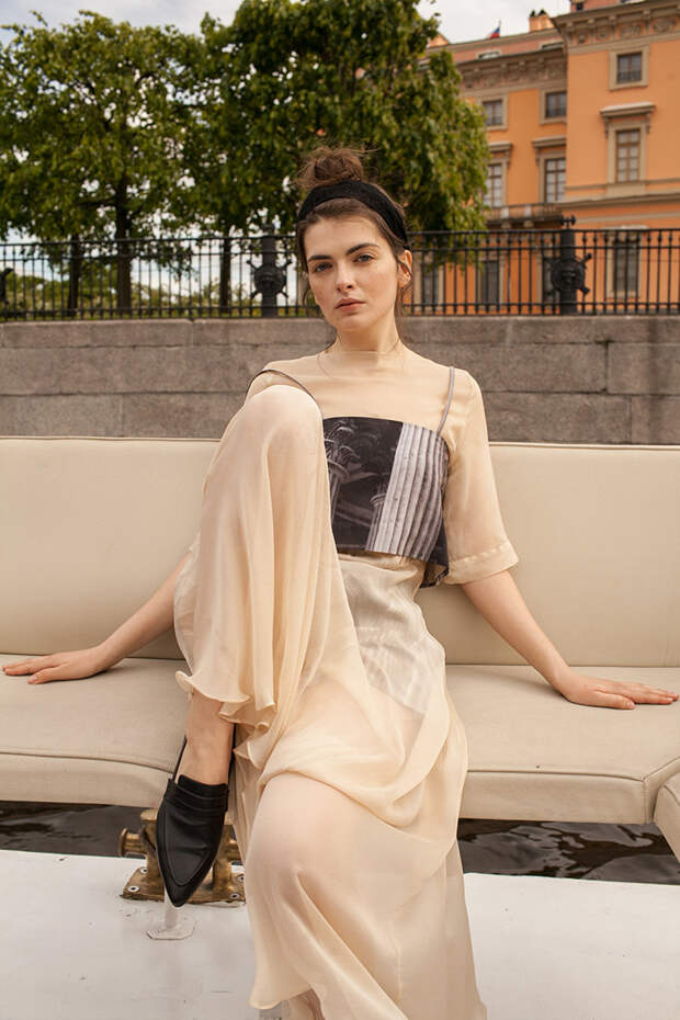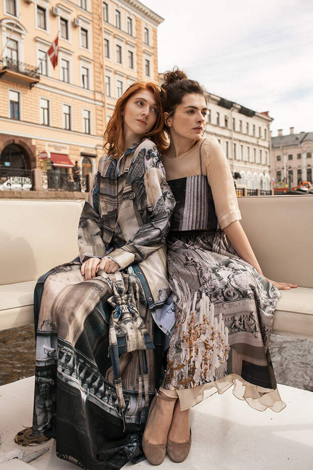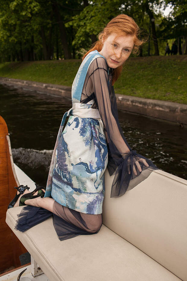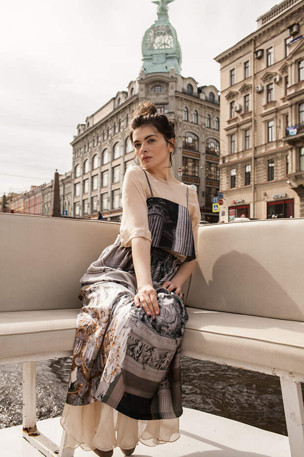 На воздушных платьях из тюля и сарафанах новой коллекции тоже можно встретить знакомые силуэты и картины: колонны Казанского Собора, люстры Юсуповского дворца на Мойке, потолок Исаакиевского.