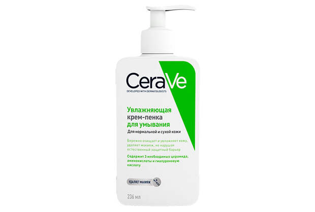 Мягкое средство для очищения - залог здоровой кожи. Крем-пенка от CeraVe как раз из таких. По текстуре это мягкий крем, который при нанесении на влажную кожу превращается в пенку. Ее можно распределить по всему лицу, включая область вокруг глаз. Пенка удаляет загрязнения, излишки кожного сала, стойкий макияж и остатки крема с солнцезащитными фильтрами, при этом не пересушивает кожу благодаря церамидам и аминокислотам.