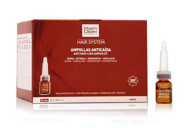 Сюда вошли ампулы против выпадения волос с запатентованным комплексом, который воздействует на уровне капилляров во время фазы роста волос, увеличивая густоту и укрепляя луковицы. Средство помогает решить такие проблемы, как андрогенная алопеция и длительная фаза телогена. В пару к нему идет анти-эйдж шампунь с гиалуроновой кислотой.