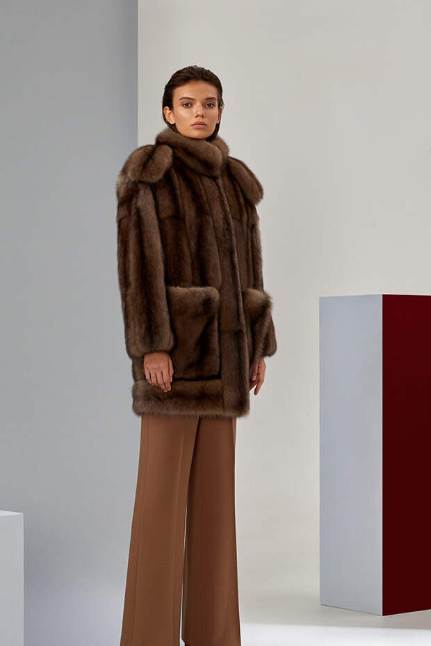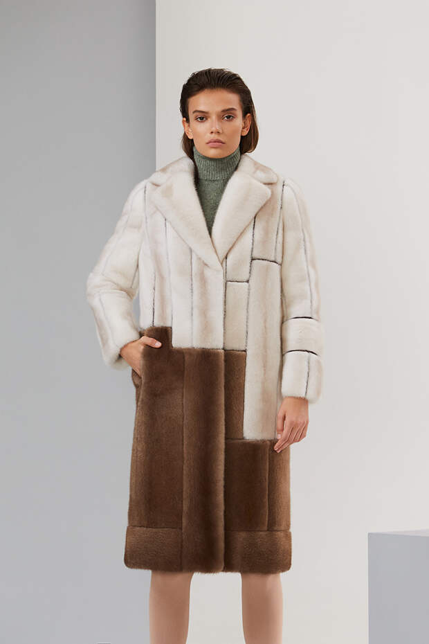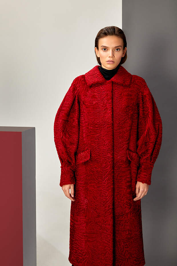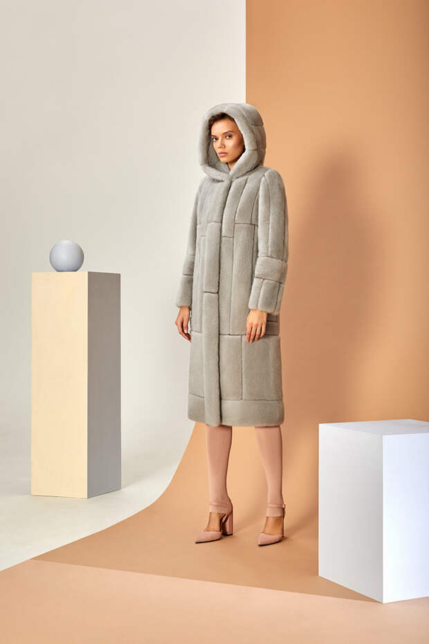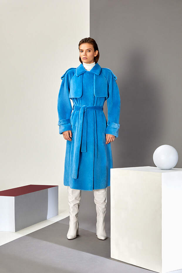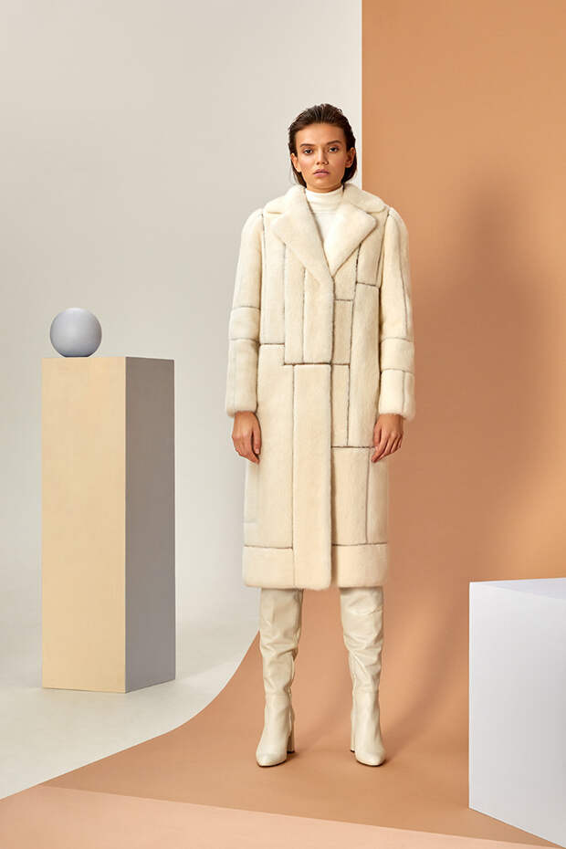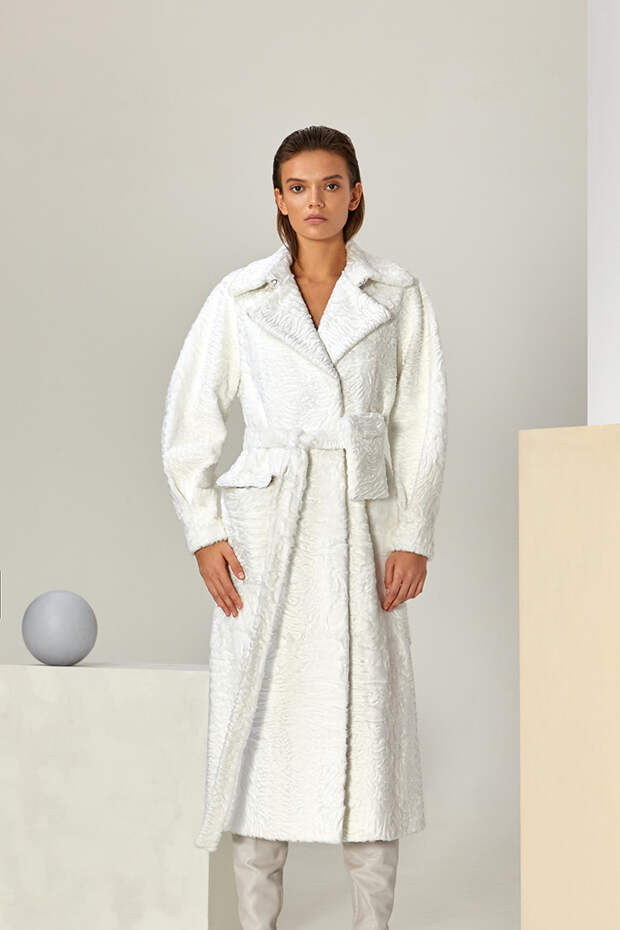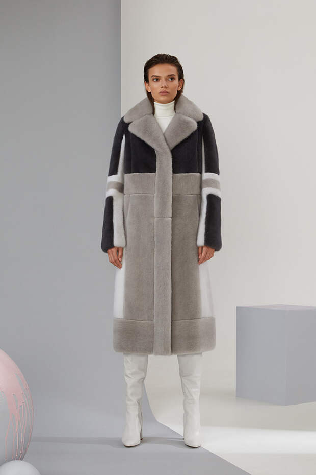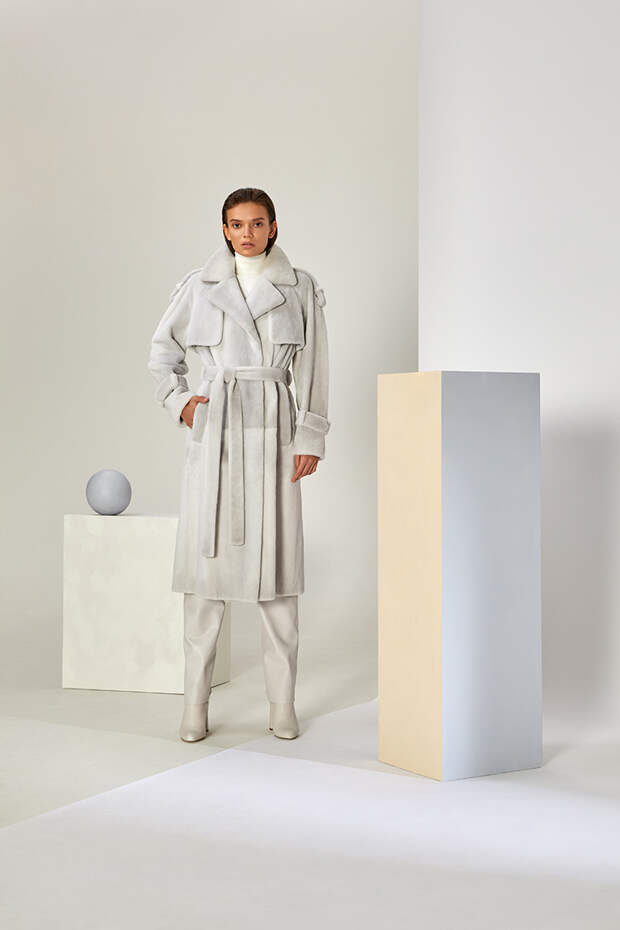 В новом сезоне Эмиль Шабаев значительно расширил палитру и добавил пару новых интересных моделей: меховые укороченные парки и тренчкот. Начиная коллекцию с классики – длинных пальто белого и нежного карамельного оттенка – дизайнер переходит к настоящим кубическим полотнам, сочетая при помощи сложных техник тона серого и разбавляя базовую гамму розовым и голубым.