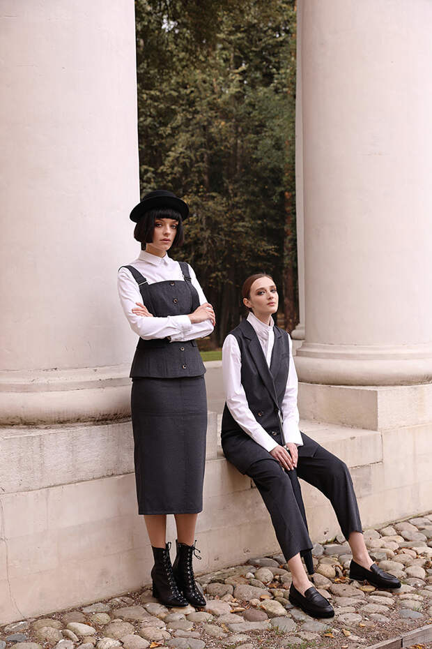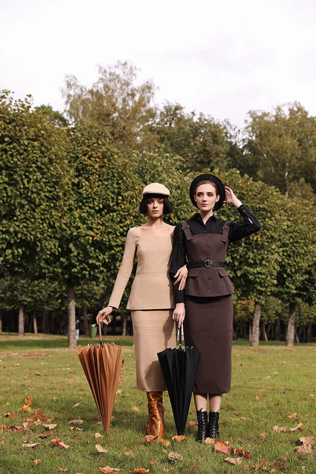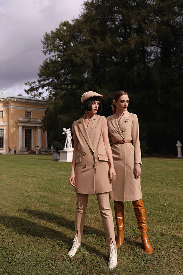 Однотонные бежевые костюмы без пуговиц, черные платья, oversize-пиджаки, минималистичные рубашки из хлопка, объемные пальто, свободные брюки, юбки ниже колена – английские джентльмены тотчас позавидуют обладательницам образов из новой коллекции All We Need.