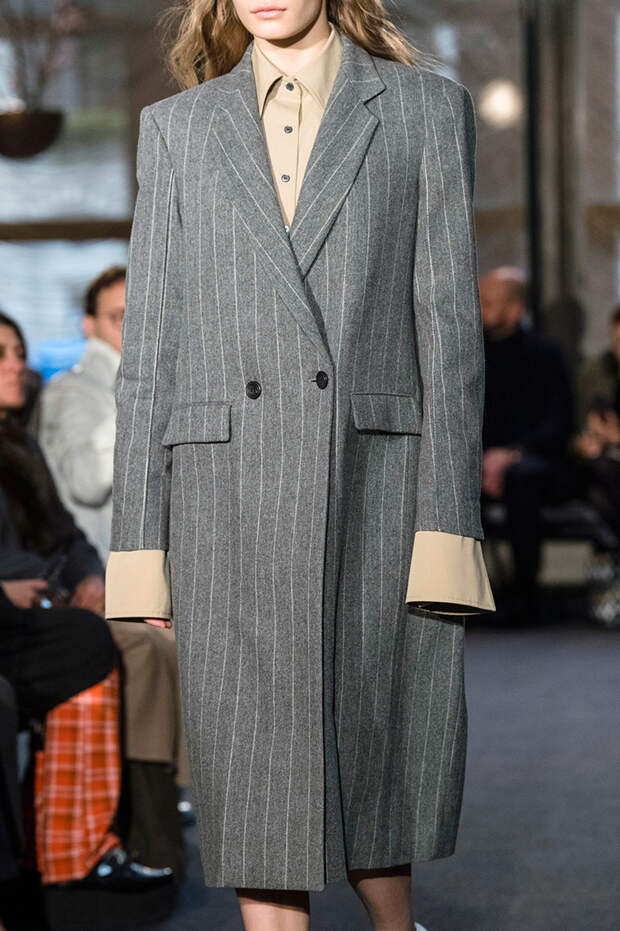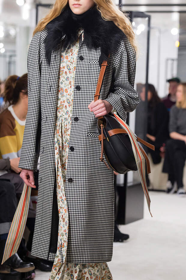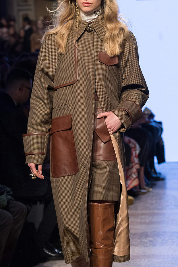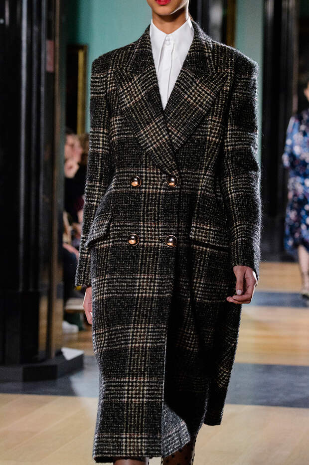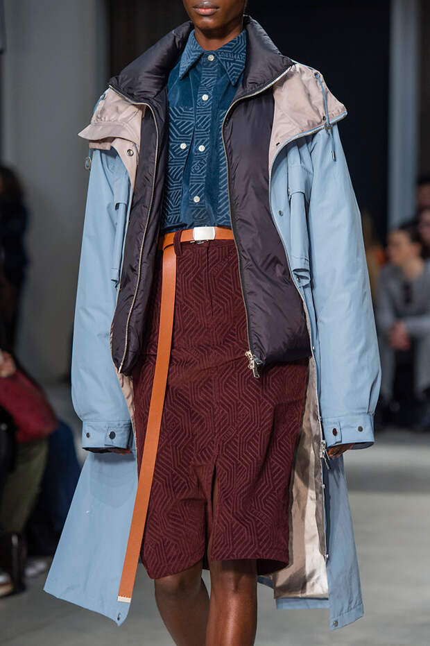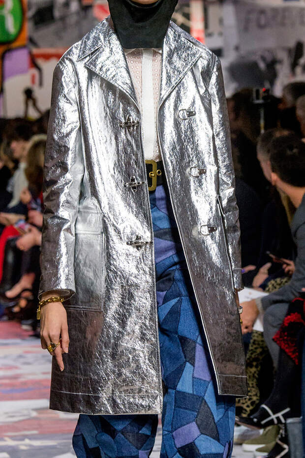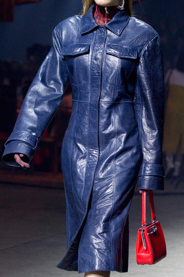 Приближенное к классике пальто, но с объемными рукавами можно найти у Prada и Loewe.Если хочется чего-то большего, обращайте внимание на модели со смешанными принтами, тканями, асимметричных фасонов, с заметными деталями. Например, пальто с анималистичным принтом голубого оттенка или в сочетании со змеиным паттерном показали Kenzo и Tom Ford. Многослойные плащи и парки стоит искать у Sacai. А примеры с необычными деталями — у Marni, Loewe и Coach.