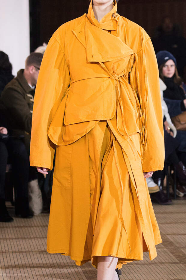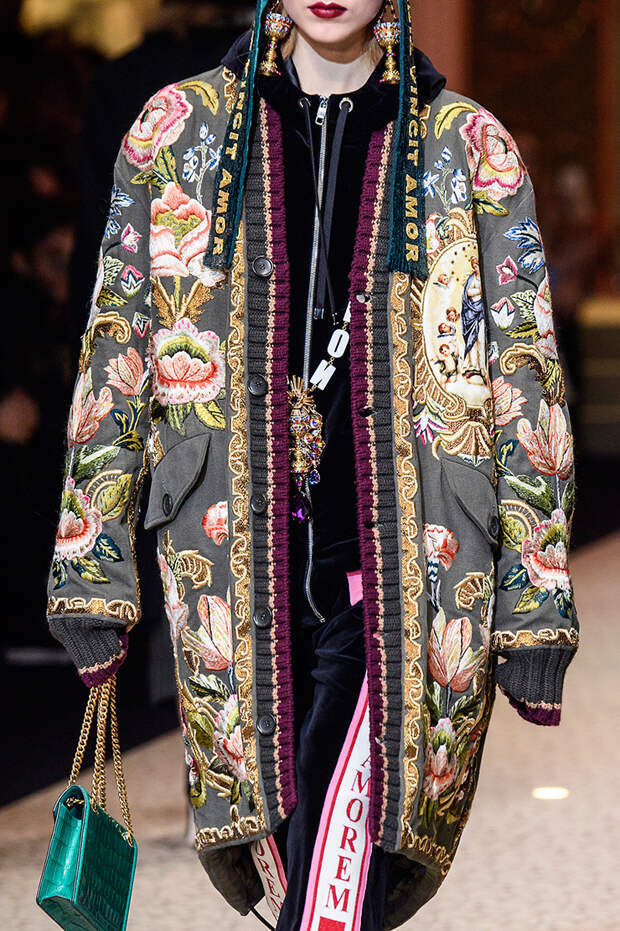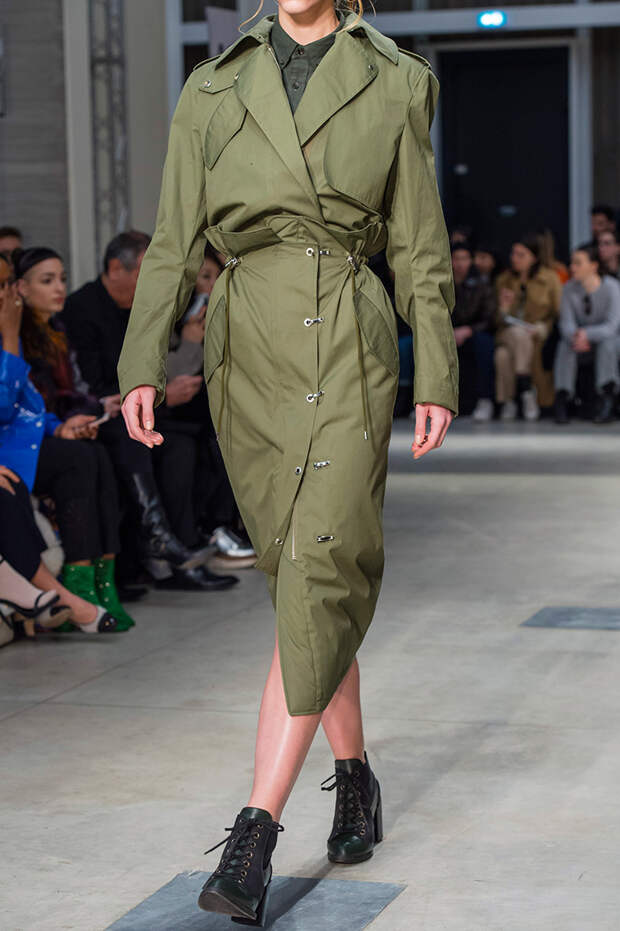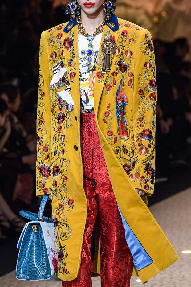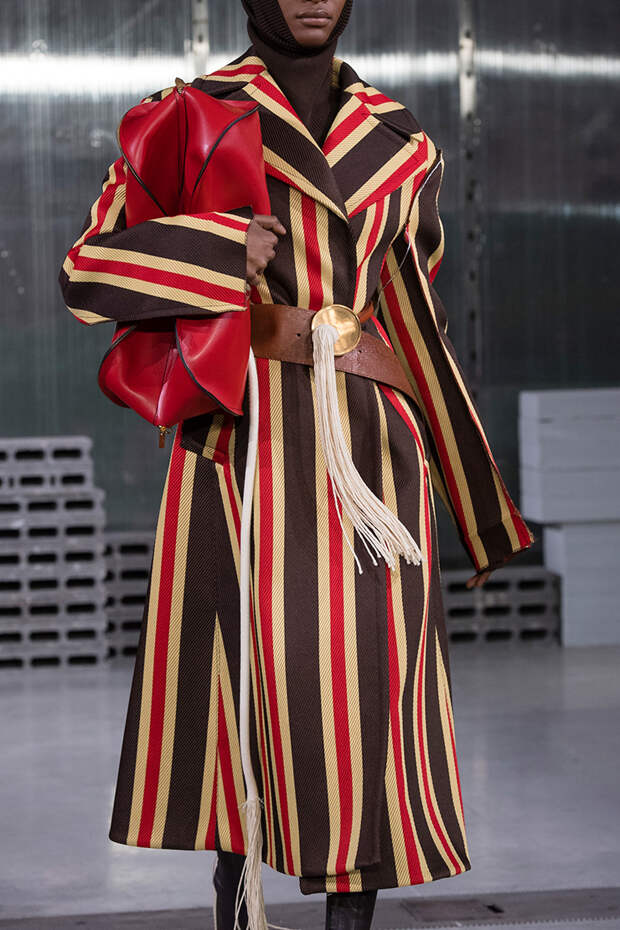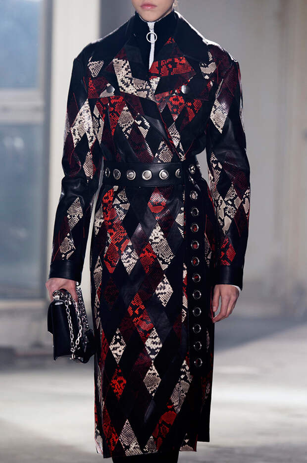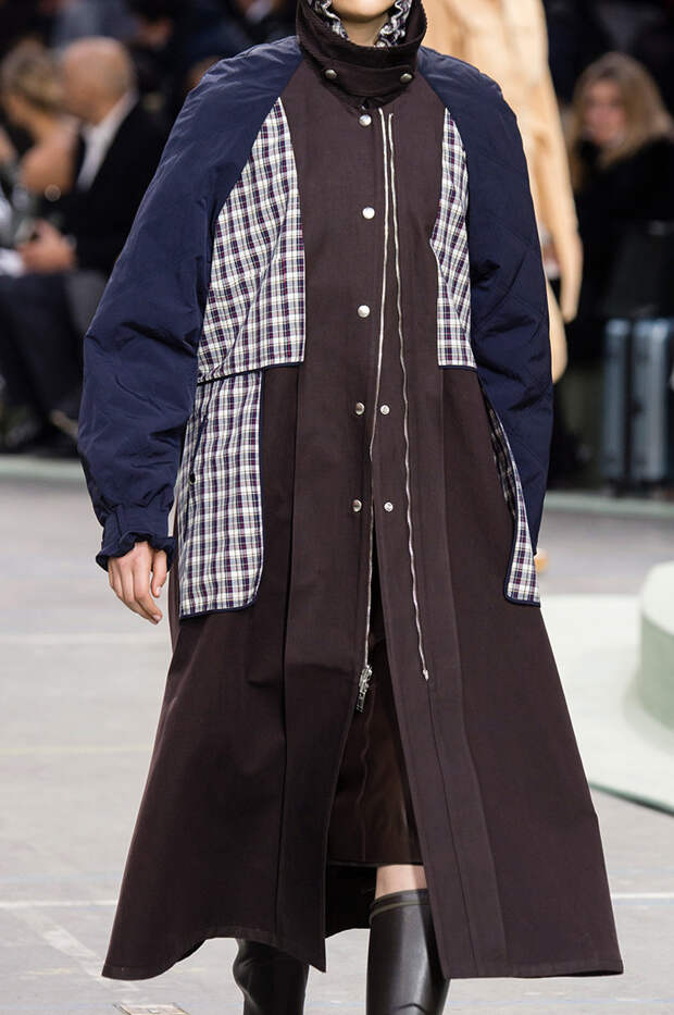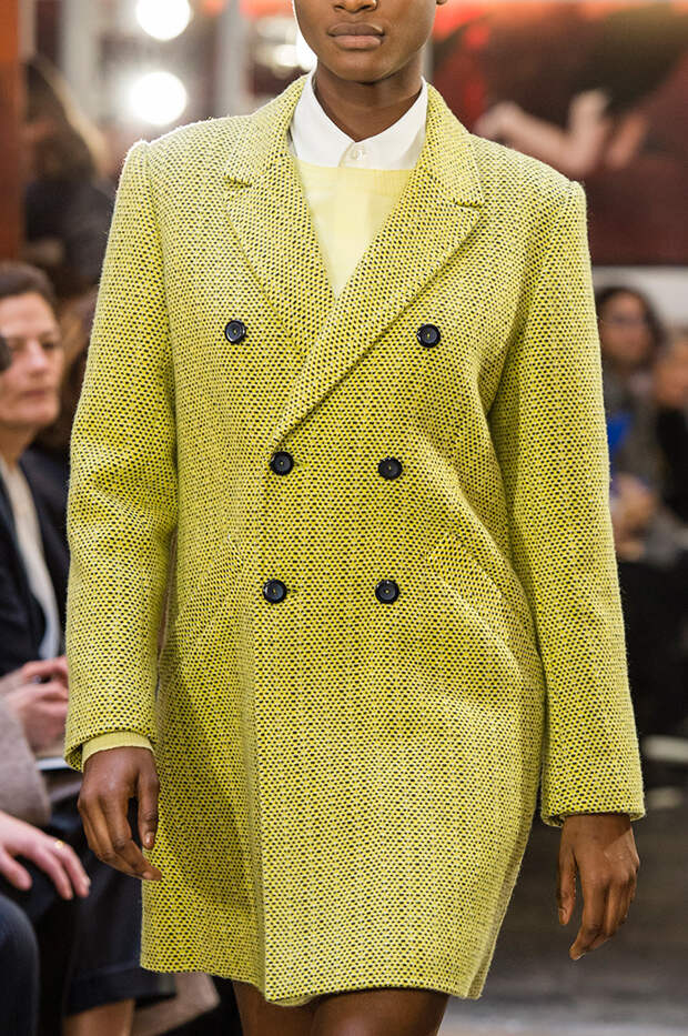 Приближенное к классике пальто, но с объемными рукавами можно найти у Prada и Loewe.Если хочется чего-то большего, обращайте внимание на модели со смешанными принтами, тканями, асимметричных фасонов, с заметными деталями. Например, пальто с анималистичным принтом голубого оттенка или в сочетании со змеиным паттерном показали Kenzo и Tom Ford. Многослойные плащи и парки стоит искать у Sacai. А примеры с необычными деталями — у Marni, Loewe и Coach.