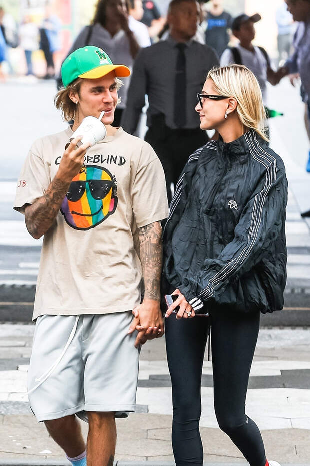 В этот раз они сыграли на контрасте: Хейли в черных легинсах и ветровке Adidas, Джастин в светлых шортах и майке. Жаль, что посмотреть на свадебное платье модели мы сможем только в следующем году.