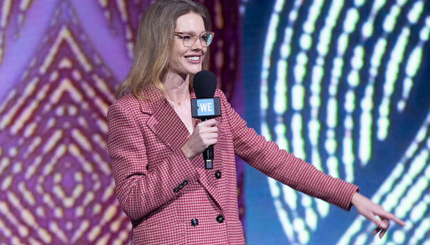 В таком стильном образе знаменитость появилась на мероприятии WE day, прошедшем 6 марта в Лондоне. Она вышла на сцену вскоре после принца Гарри и Меган Маркл и поговорила с юными зрителями на важные социальные темы.
