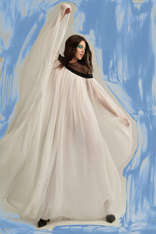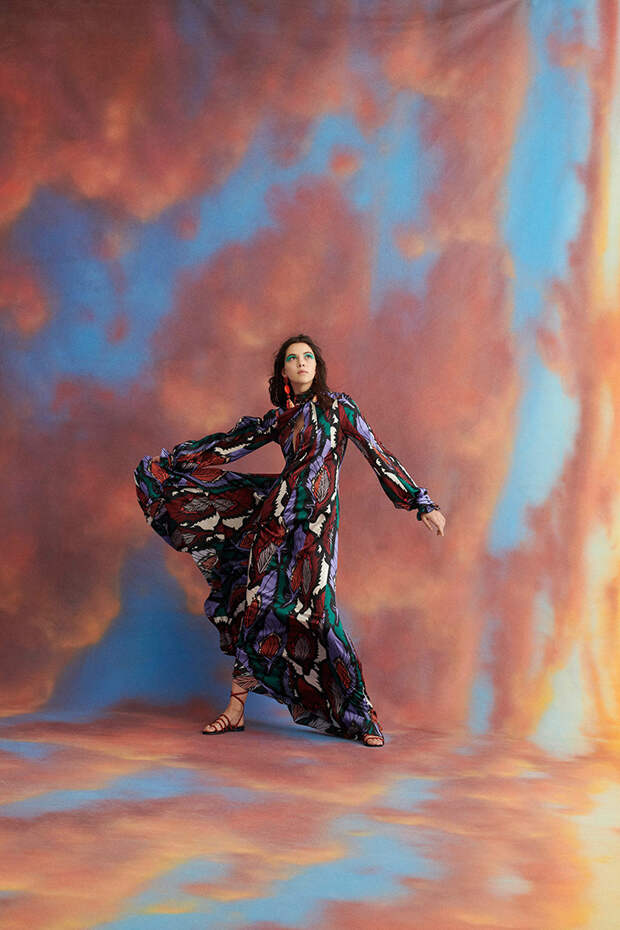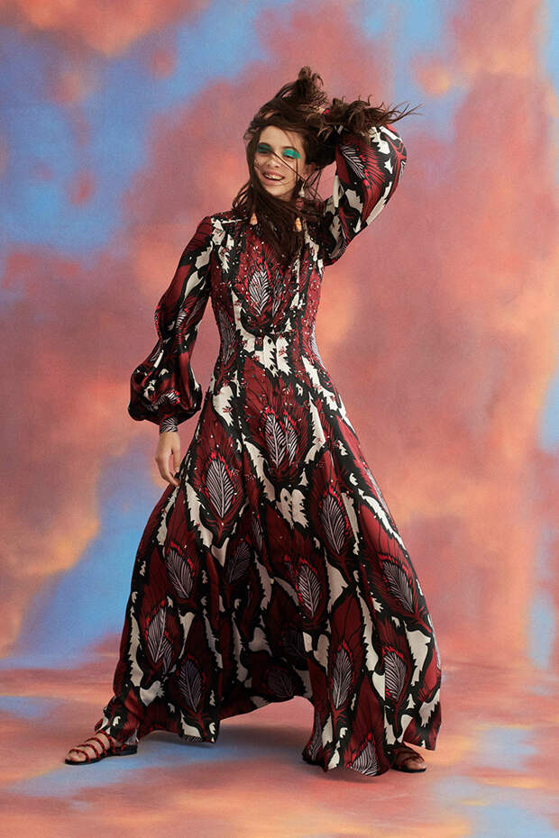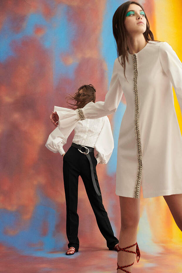 Даже если длинный расклешенный комбинезон выполнен с абстрактным красочным рисунком, его все равно легко представить в гардеробе на каждый день. Атласные костюмы имеют простой строгий фасон, так что даже яркие модели впишутся в офисный дресс-код. Блузки с огромными рукавами и топ с баской, которые напоминают цветы, смотрятся необычно именно за счет бесшовного, свободного и объемного кроя. И что не менее важно — все эти вещи действительно можно носить в повседневной жизни. Причем представить в них можно как юное поколение модниц, так и более старшее.