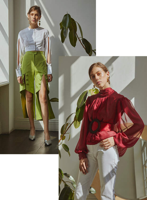Наверное, из всех наших коллекций эта — самая женственная и игривая. Много сатина, красного цвета, асимметрии. Не обошлось и без нашего фирменного акцента на рукавах и отсылок к культовому сериалу «Династия». Мы участвуем в Mercedes-Benz Fashion Week Tbilisi, чтобы представить коллекцию в динамике: музыка, пространство и свет создают особую атмосферу. До Недели моды мы презентовали ее на выставке в Париже, после чего добавили несколько элементов специально для показа. А еще показ — прекрасная возможность пригласить журналистов, байеров и клиентов, получить от них обратную связь и обменяться опытом и впечатлениями.