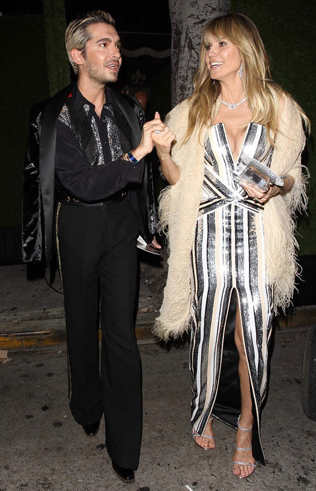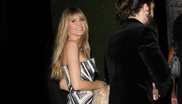 Накануне вечером американская певица Дайана Росс с размахом отметила день рождения в Голливуде. В числе приглашенных на вечеринку знаменитости были замечены многие ее звездные друзья, в том числе - Хайди Клум в сопровождении жениха Тома Каулитца. Для праздника топ-модель выбрала очень эффектный наряд: вечернее платье в пол, расшитое пайетками, нюдовую накидку в страусиных перьях и серебристые босоножки на высоких каблуках.