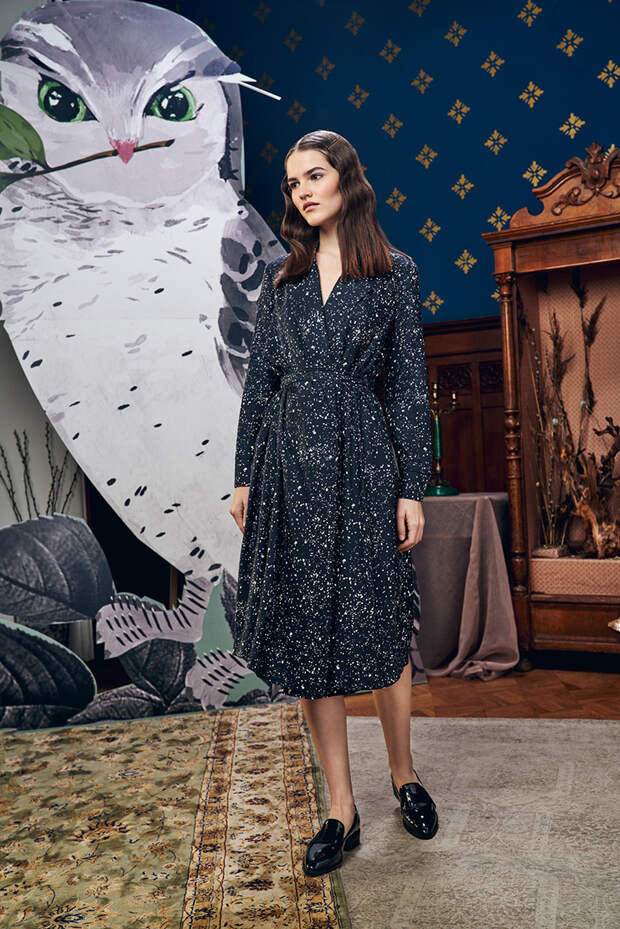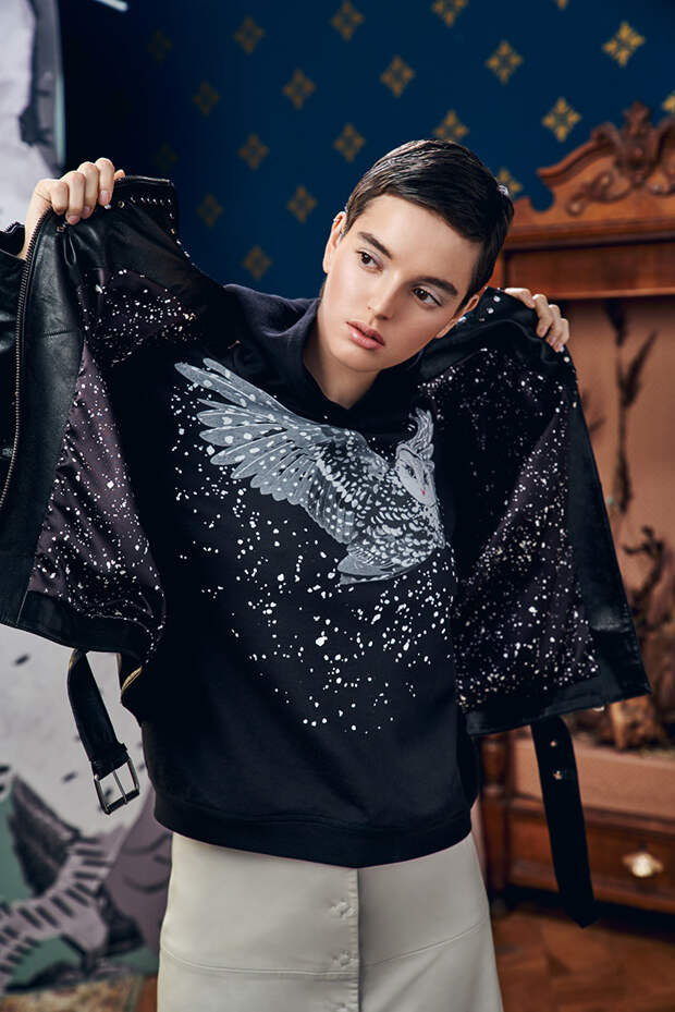Для "Снежной Королевы" это первый опыт совместной работы с люксовой модной маркой. И сразу прямое попадание: ведь сложно представить дизайнера, который бы смог прочувствовать ДНК всероссийской компании лучше, чем это сделала Алена. Дружба двух таких разных, но одинаково "сказочных" брендов дала отличный результат: на свет появились косухи с изображениями магических сов на спинах; уютные теплые "халаты" из стеганой ткани; летящие платья, напоминающие наряд Герды; свитшоты с оленями и худи с совами, будто одолженные у Кая. А для самой королевы точно бы подошли строгие приталенные пальто, остромодные кожаные плащи и женственные шейные платки.