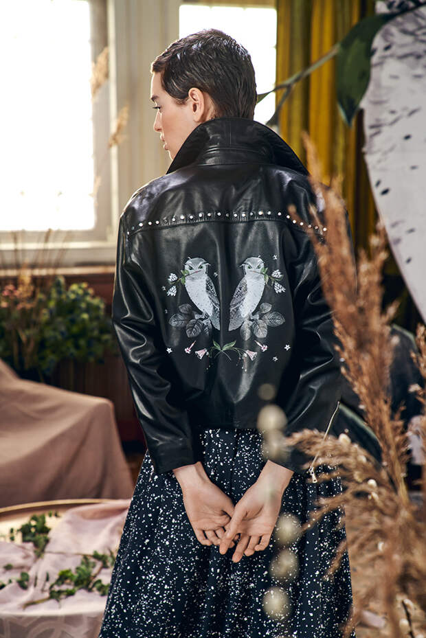 Но перенесемся из сказочного пространства в реальность: стоит поговорить о том, как современной девушке адаптировать вещи из лимитированной линейки в будничном гардеробе. Начнем с косух: любительницы классики оценят привычный вариант в черном цвете, а модницы обратят внимание на пудрово-розовую, небесно-голубую и фисташково-зеленую куртки, ведь эти цвета - одни из главных в новом сезоне.