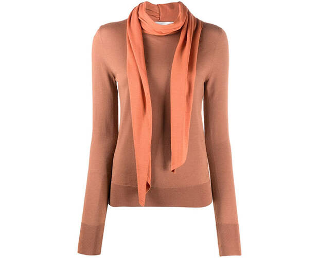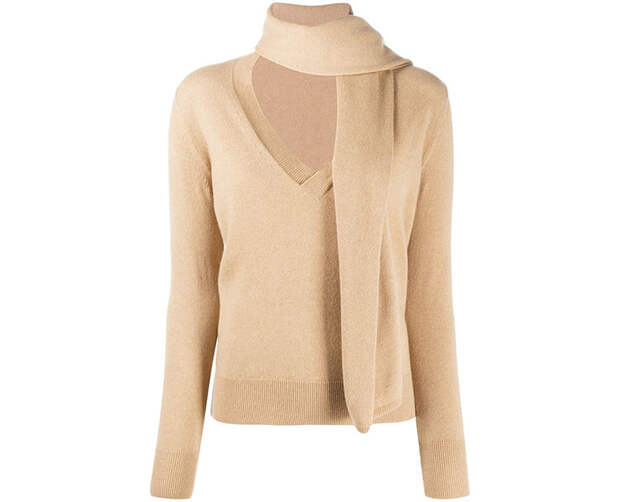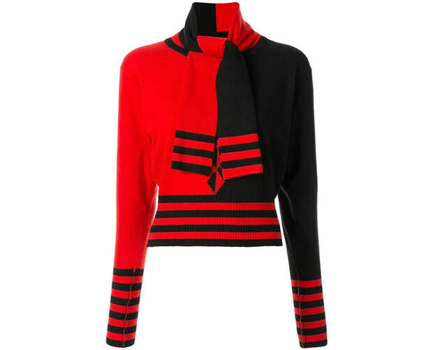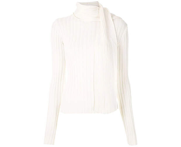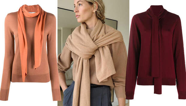 В список трендов этой зимы ненавязчиво прокрался свитер с шарфом – интересная альтернатива модели с высоким горлом. И хотя этот вид свитеров еще не успел доверху заполонить инстаграмы модниц, о покупке подобного красавца точно стоит задуматься. Разве можно не соблазниться такой практичной вещью: и джемпер, и шарф одновременно. Теперь не нужно ломать голову, как сочетать шарф с остальной одеждой в образе – за вас все придумали и совместили все прелести в один уютный свитер. Конечно, не стоит лукавить – базовые джемперы и кардиганы успели нам наскучить. А вооружиться практичным и в то же время ярким свитером «с изюминкой» точно не будет лишним.