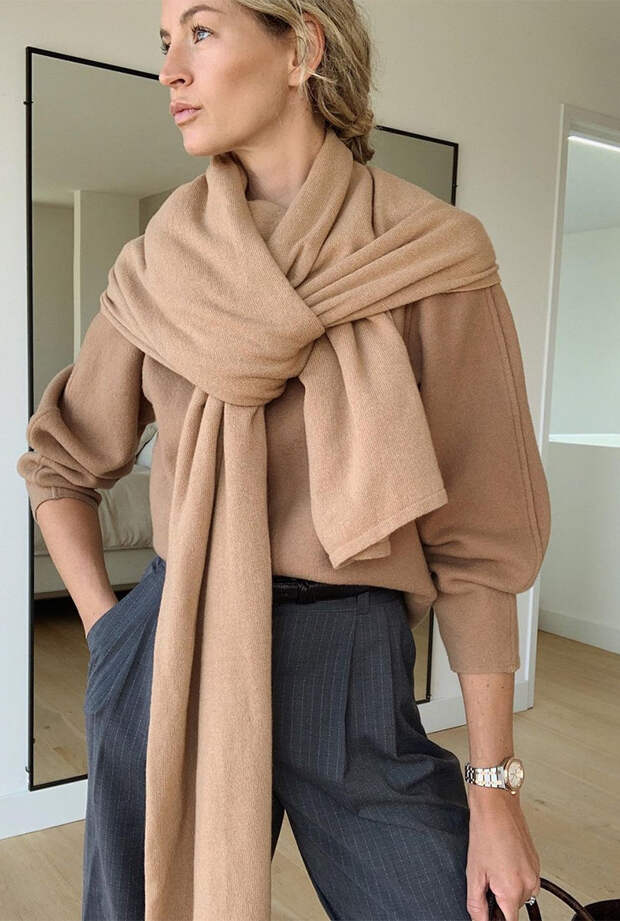 Осталась малость – определиться, какой свитер выбрать. Безусловно, в первую очередь стоит присмотреться к базовым однотонным моделям (например, от Loulou Studio или Gloria Coelho). Носить такие свитеры можно со всем – от классических пальто и элегантных лодочек до брутальных кожаных пиджаков и «мартинсов». Уверяем, благородные серо-коричневые оттенки с легкостью впишутся в любой образ, а благодаря шарфу – заставят его «играть» совершенно по-новому. Но останавливаться на базовом точно не стоит – если нырять в тренды, то с головой! Поэтому обратите внимание на модели с контрастными полосками (как у Chanel или Burberry). Такие свитеры идеально впишутся в эстетику образов в стиле спорт-шик. Смело носите их с шелковыми юбками миди и массивными кроссовками. Дополняйте образ яркой бейсболкой или нарядной сумкой из бусин, чтобы точно не остаться без внимания.