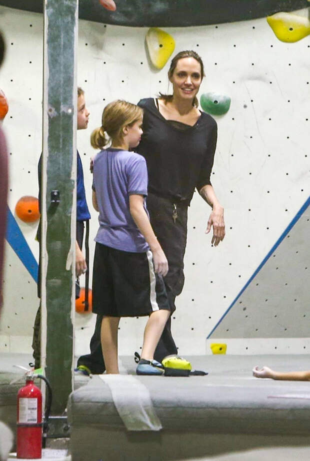 Так, 20 января папарацци застали ее в компании сына Нокса и дочери Вивьен на занятиях по скалолазанию. Звездная мама вместе со своими детьми отправилась на тренировку и с удовольствием покоряла вершины. С ее лица при этом не сходила искренняя улыбка. И это не может не радовать!