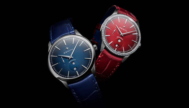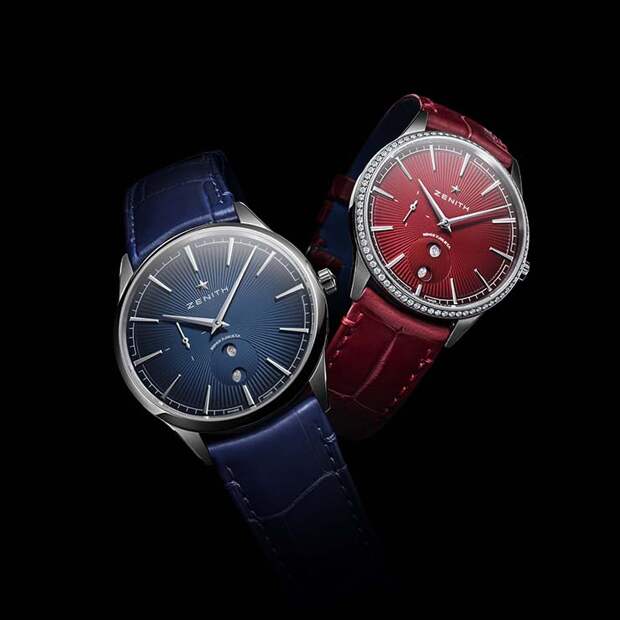 Романтичная интерпретация знаковой модели Elite Moonphase получилась парной: мужская версия, Romeo, имеет синий циферблат, оформленный в технике гильоше «солнечные лучи», а Julieta – красный циферблат с переходами тона.