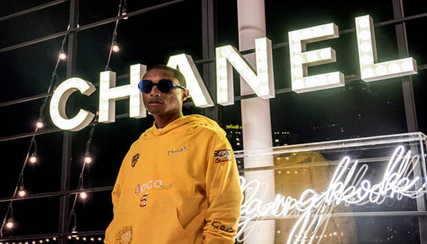 "Журчащее" звучание французского языка из уст Коко Шанель, полупустая мрачная гостиная, освещенная лишь экраном небольшого ретро-телевизора, две девушки в ярких халатах, вальяжно расположившиеся на кожаном диване - именно так начинается короткий ролик-анонс коллекции Фаррелла Уильямса для Chanel. Сам музыкант появляется в этом видео лишь на пару секунд - но этого времени достаточно, чтобы рассмотреть стильный светлый свитшот с вышивкой, надетый на артисте.