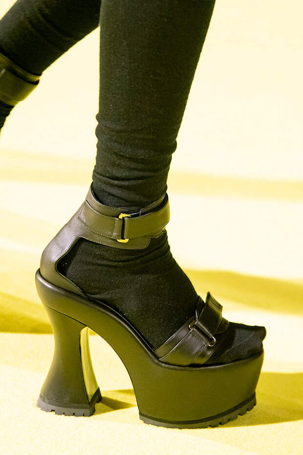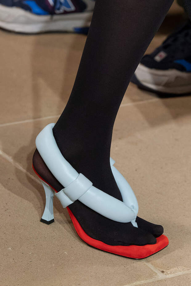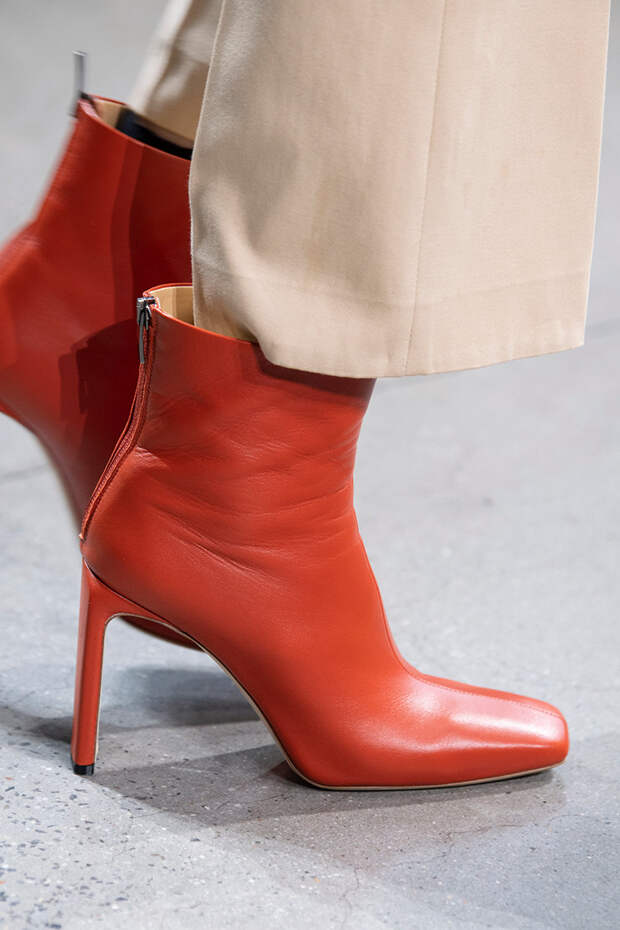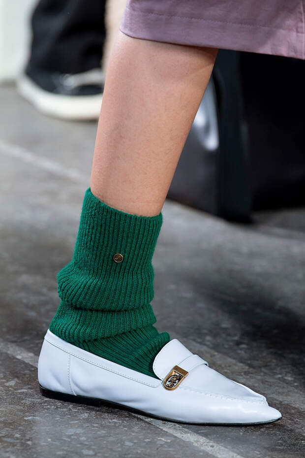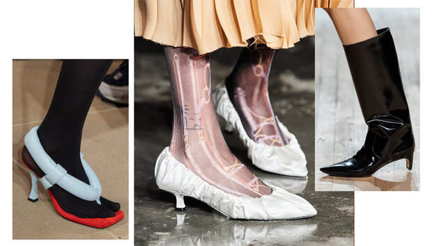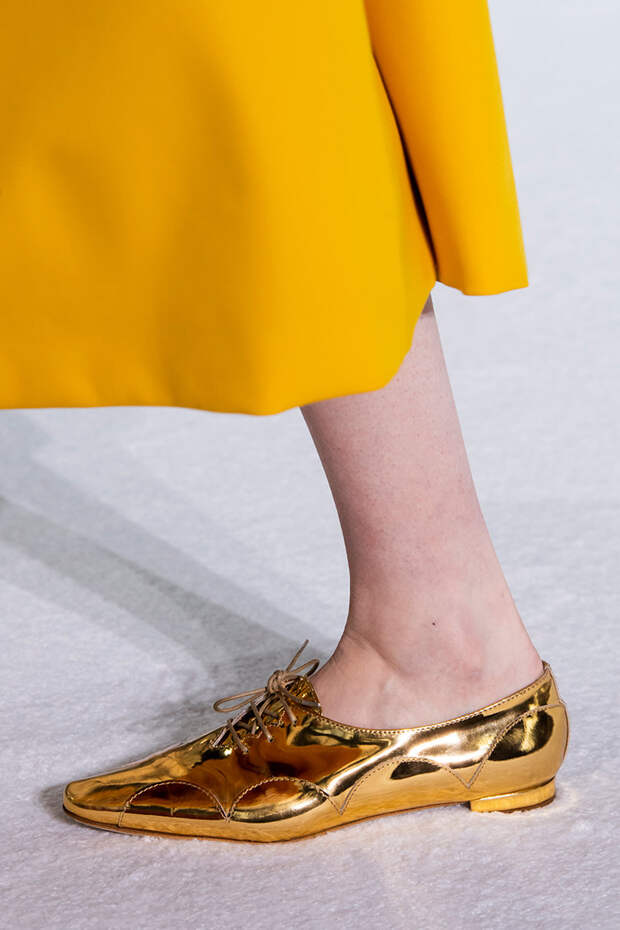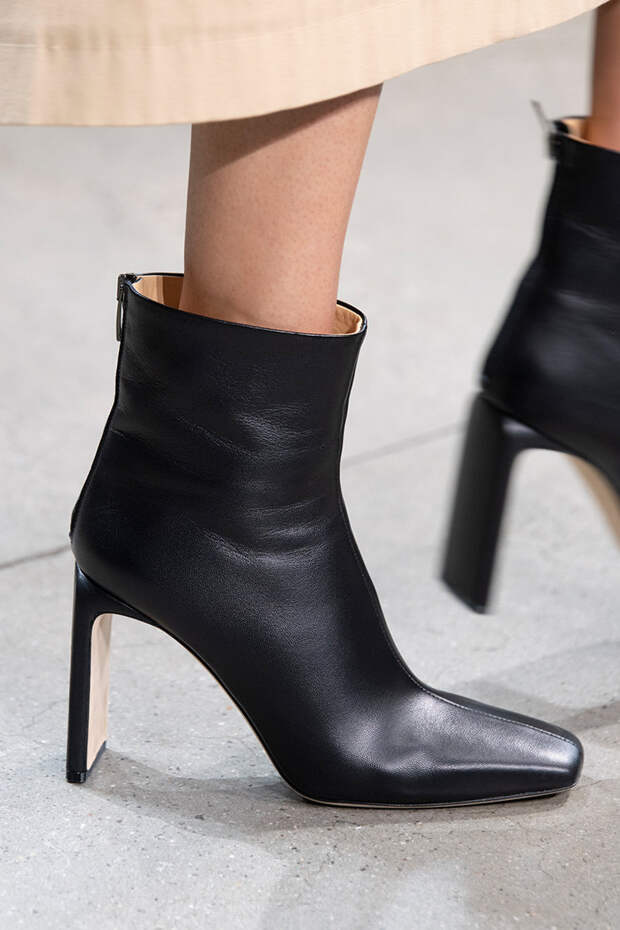 Обувь с геометричными мысками можно заметить на показах Proenza Schouler (запомните эти роскошные сапоги-чулки), Jonathan Simkhai, Zimmermann, Self-Portrait, Jason Wu. Дизайнеры дружно призывают носить туфли и босоножки на носок: Marc Jacobs - милые "Мэри Джейн" на каблуке kitten heels, Noon by Noor - сандалии на ремешках, Coach 1942 - мягкие лоферы, Ulla Johnson - нарядные босоножки с цепями. Каблуки образцовой высоты ищите у Marc Jacobs, Carolina Herrera и Khaite. Самой нарядной парой стали лодочки Rodarte, украшенными стразами.