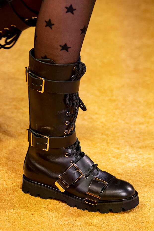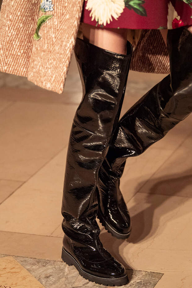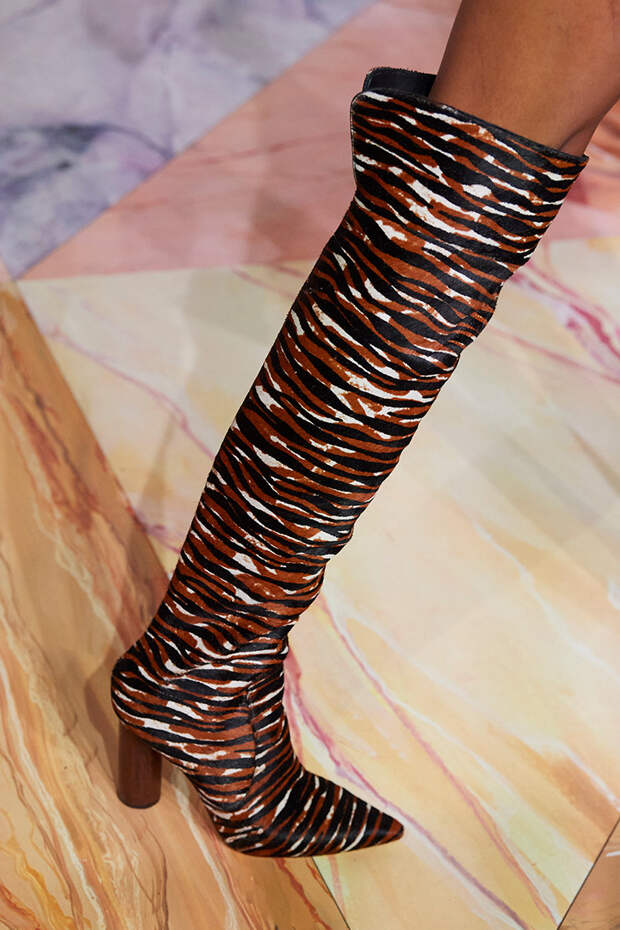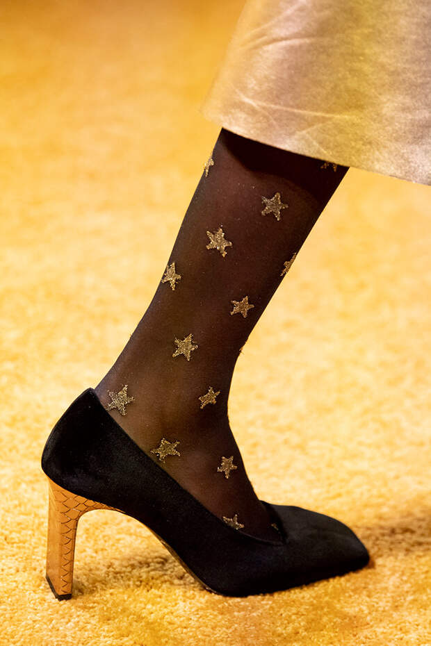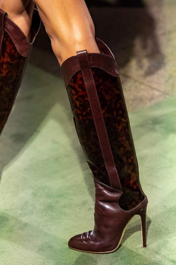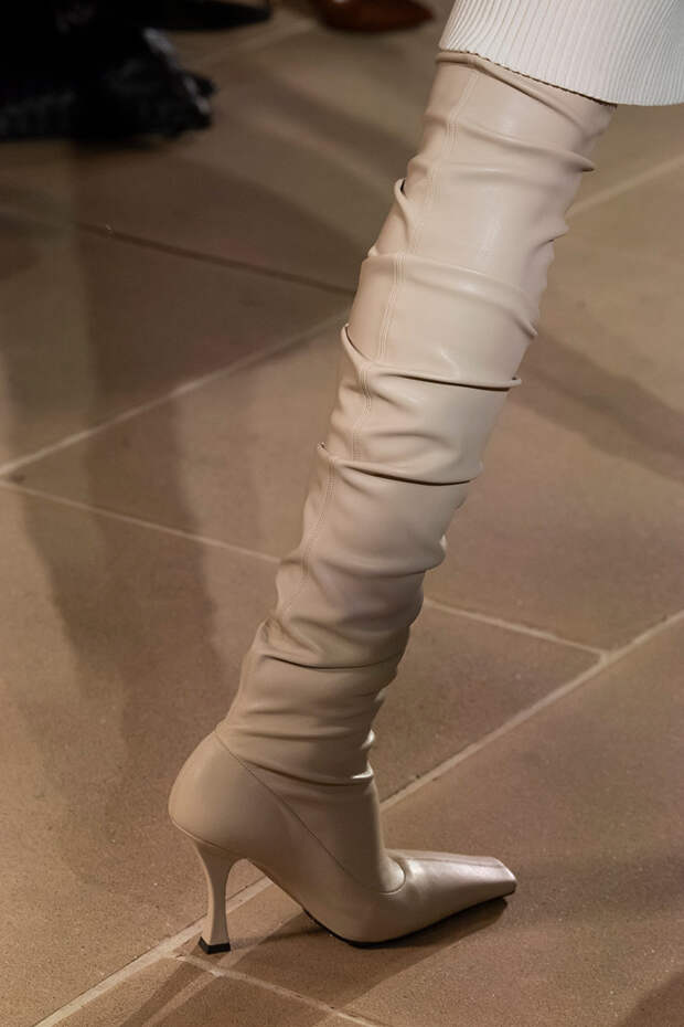 Обувь с геометричными мысками можно заметить на показах Proenza Schouler (запомните эти роскошные сапоги-чулки), Jonathan Simkhai, Zimmermann, Self-Portrait, Jason Wu. Дизайнеры дружно призывают носить туфли и босоножки на носок: Marc Jacobs - милые "Мэри Джейн" на каблуке kitten heels, Noon by Noor - сандалии на ремешках, Coach 1942 - мягкие лоферы, Ulla Johnson - нарядные босоножки с цепями. Каблуки образцовой высоты ищите у Marc Jacobs, Carolina Herrera и Khaite. Самой нарядной парой стали лодочки Rodarte, украшенными стразами.