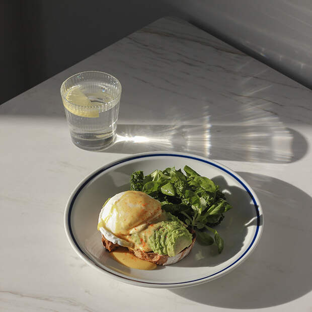 Меню — под стать светлому и уютному пространству. Понятная и заведомо вкусная еда для ранних и поздних завтраков (до 14.00 по будням и до 16:00 по выходным): сырники из рикотты с сиропов агавы и голубикой, овсяная каша на растительном молоке (которого тут несколько видов), пашот, скрембл, традиционные тосты с авокадо и лососем и целых 5 видов боулов, в том числе и довольно сытных и подходящих скорее для ланча (например, с курицей гриль, салат с фета/яблоком или зелёный салат с орехами). Постоянные позиции разбавлены сезонными specials и небольшой винной картой — на случай настроения красиво побранчевать в субботу после запоминающейся пятницы.
