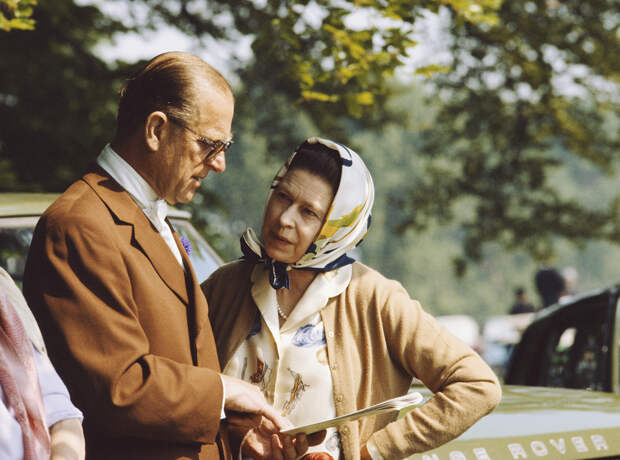 Королева и принц Филипп беседуют вместе во время The Royal Windsor Horse Show на территории Виндзорского замка, май 1982 года