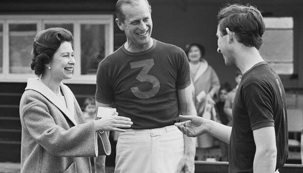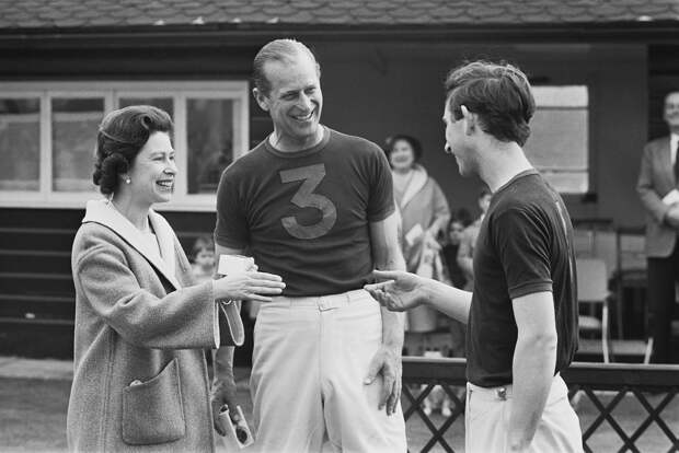 Королева Елизавета II награждает принца Филиппа и принца Чарльза трофеями после матча в поло, 30 апреля 1967 год